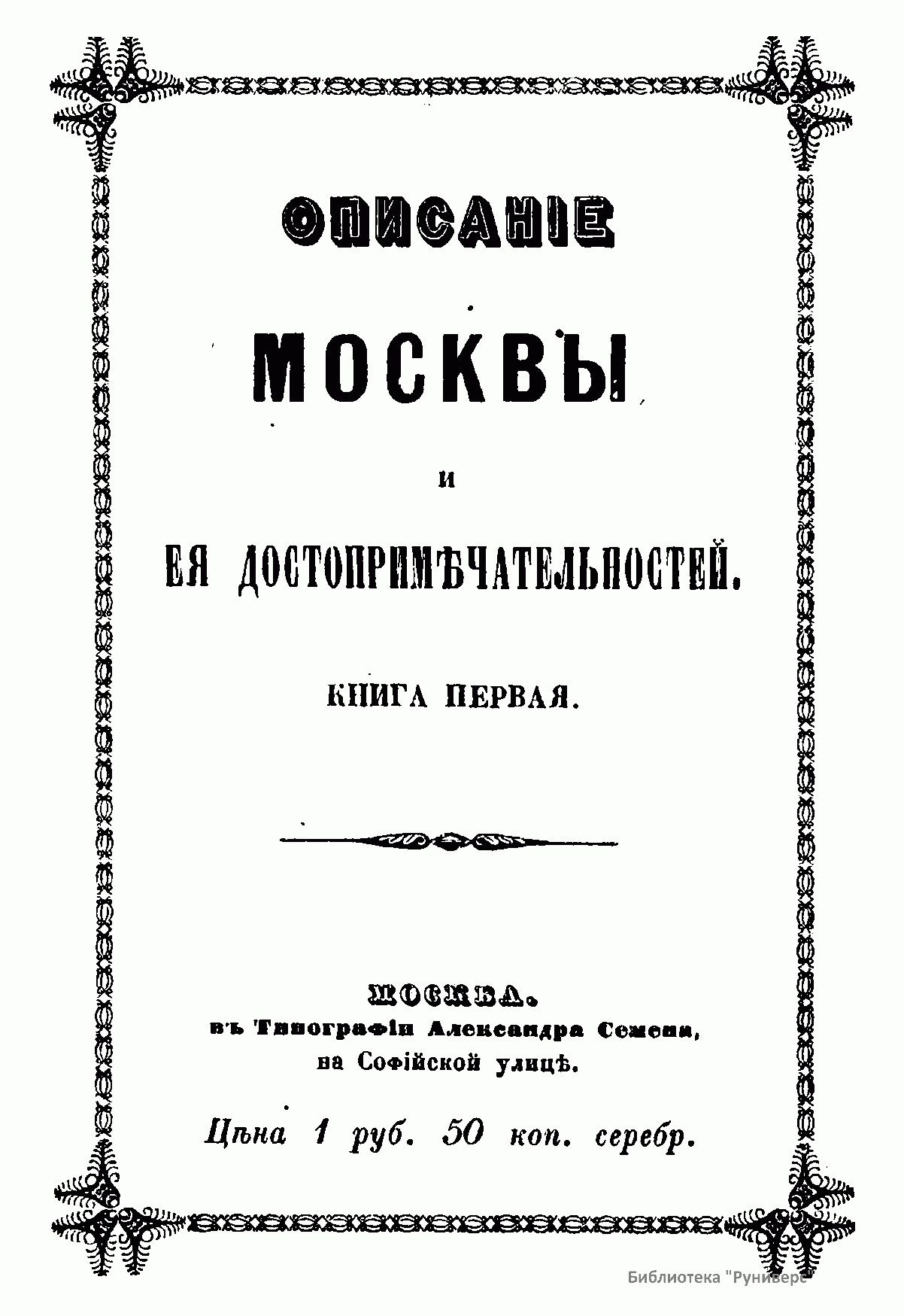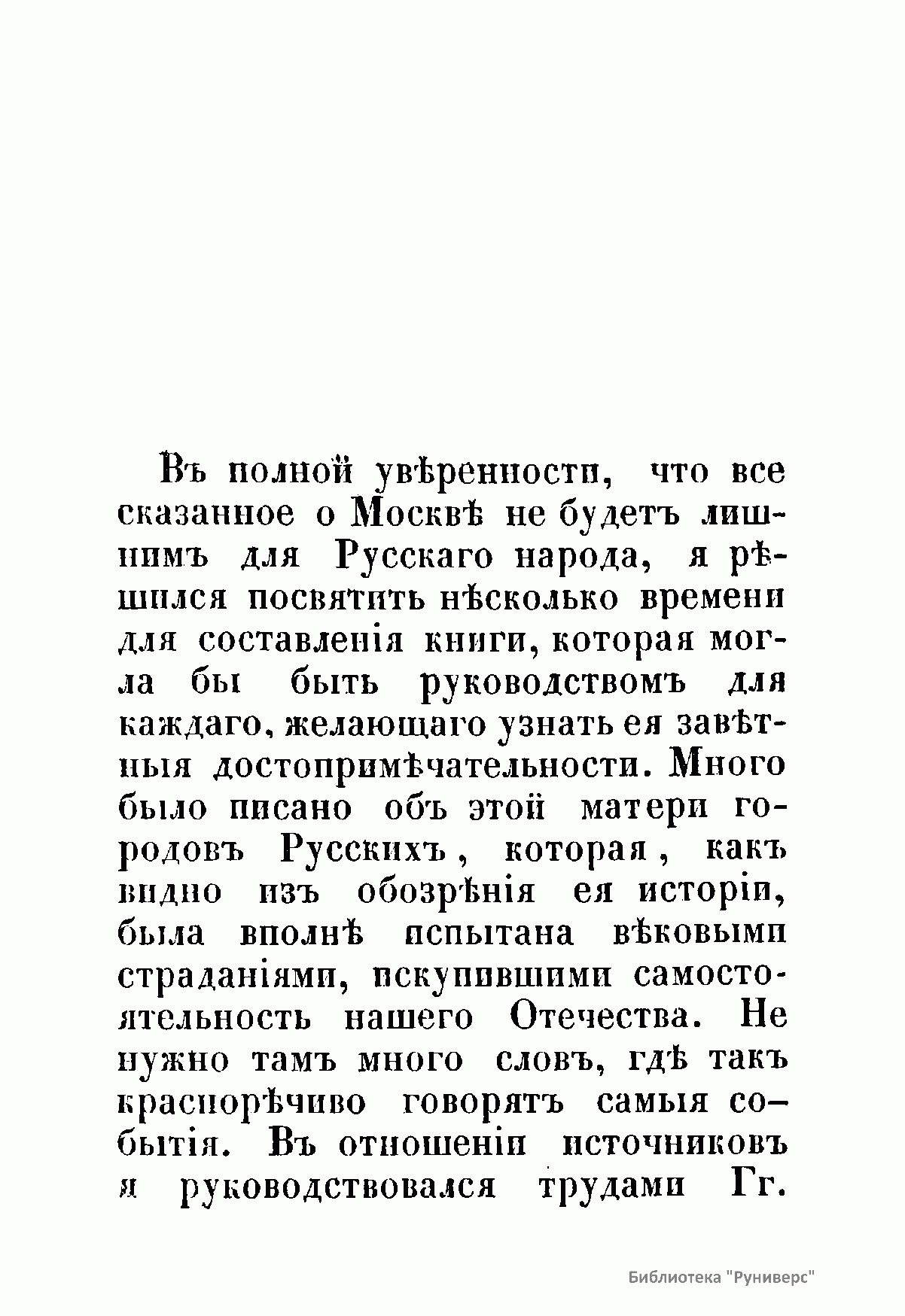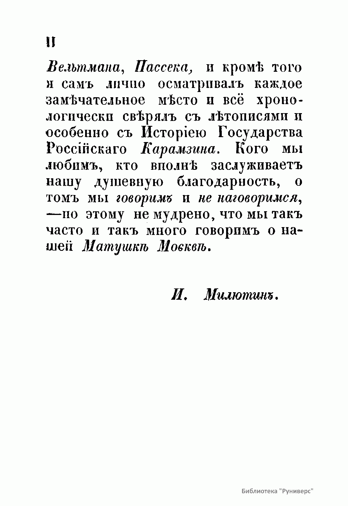 Автор двухтомника И. Милютин считает, что все сказанное о Москве не будет лишним для русского народа. В отношении источников он руководствовался трудами Вельтмана и Пасека, кроме того, лично осматривал каждое замечательное место и всё хронологически сверял с летописями и особенно с «Историей государства Российского» Карамзина. «Кого мы любим, кто вполне заслуживает нашу душевную благодарность, о том мы говорим и не наговоримся, поэтому не мудрено, что мы так часто и так много говорим о нашей Матушке Москве».