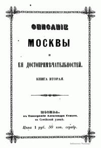 Описанiе Москвы и ея достопримѣчательностей. Книга вторая