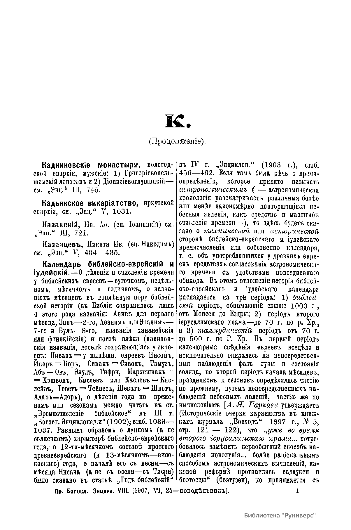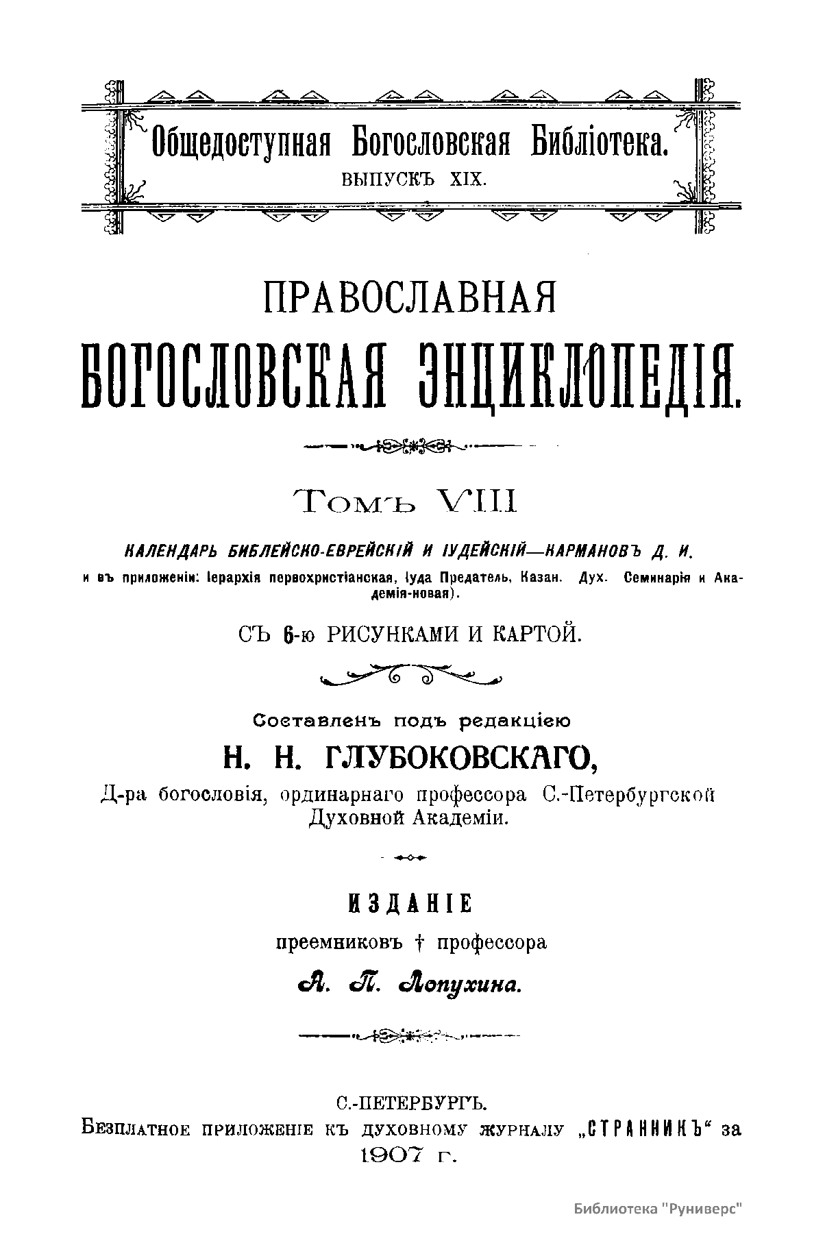 Православная богословская энциклопедiя. Томъ VIII. Календарь Библейско-Еврейскiй и Иудейскiй - Кармановъ Д.И.