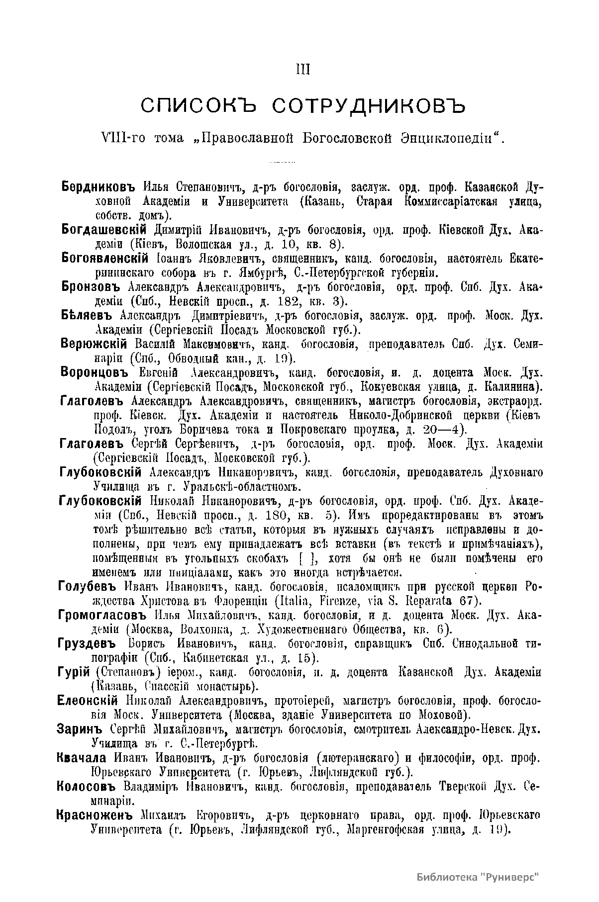 Энциклопедия издавалась как приложение к журналу "Странник". Первые пять (на слова «Алфа-Ифика») вышли под редакцией проф.