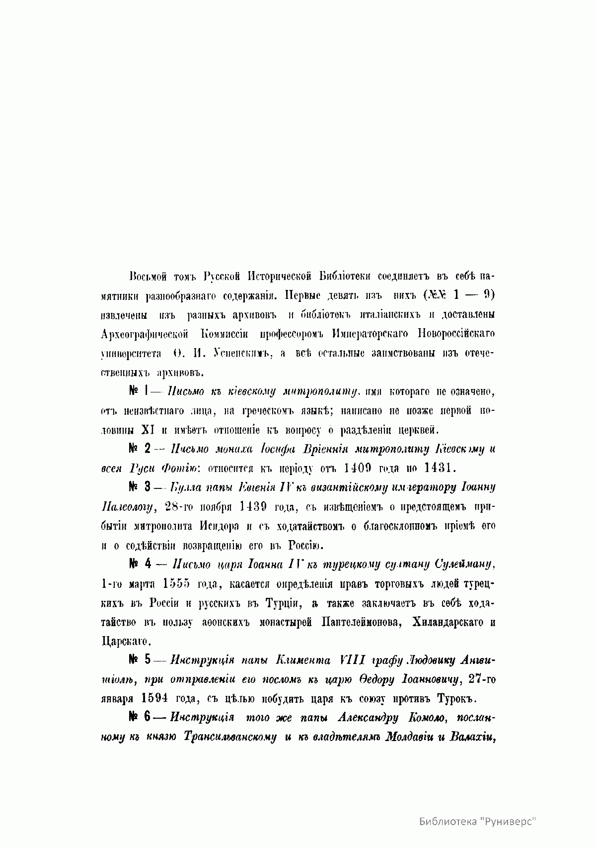 Русская историческая библiотека, издаваемая Археографическою комиссiею. Томъ осьмый