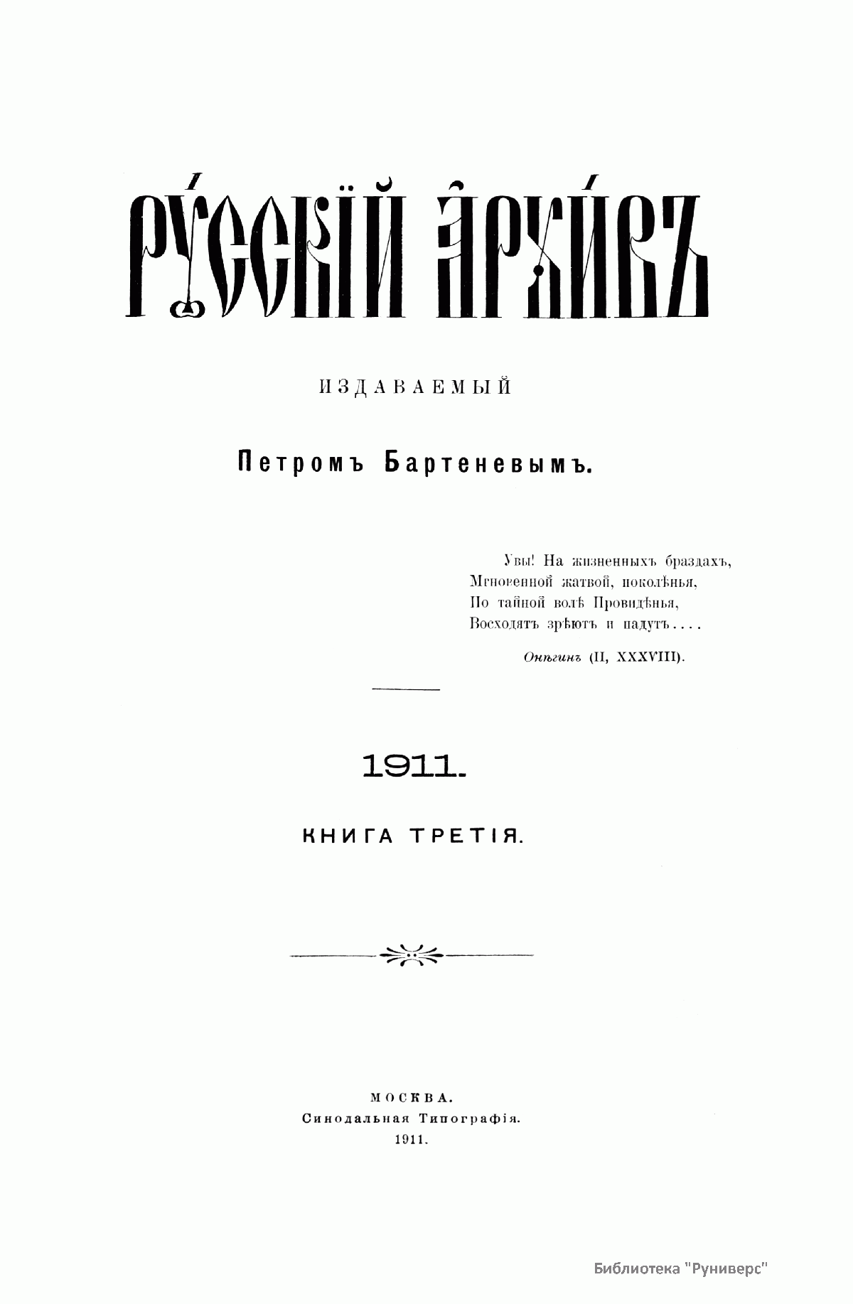 Русскiй архивъ. Историко-литературный сборникъ. 1911. Выпуски 9-12