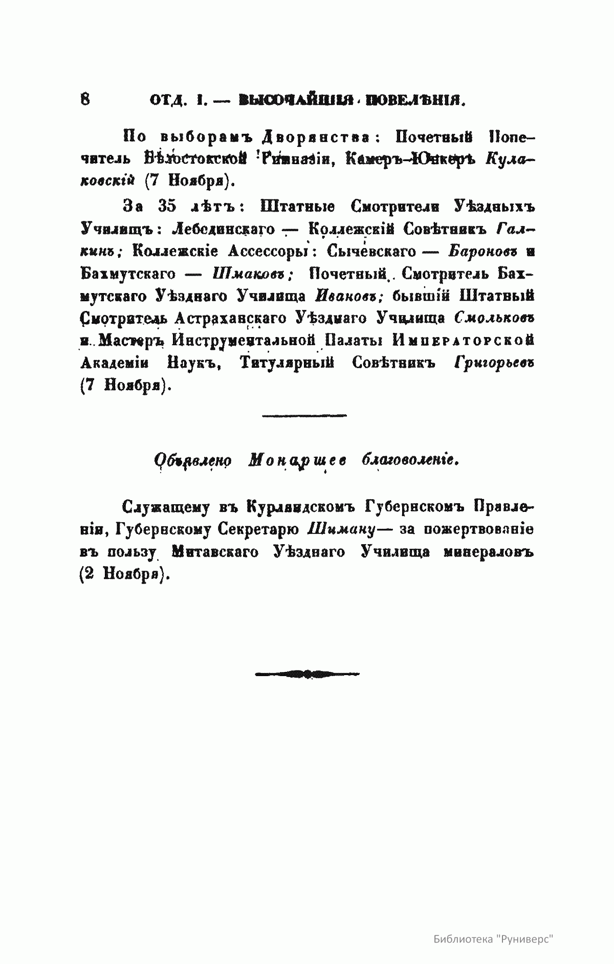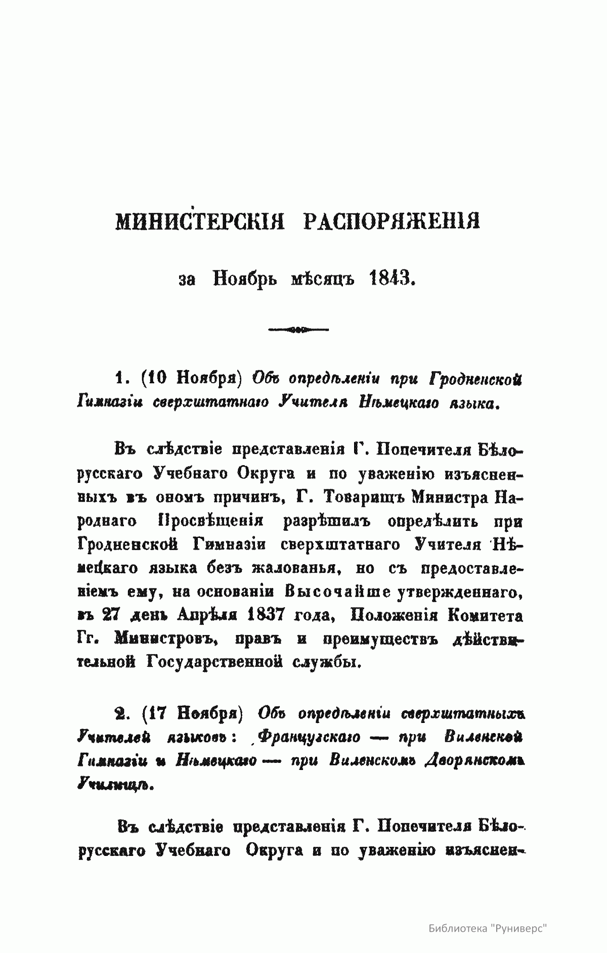1. «Записки Департамента народного просвещения». Вышло в свет три книги этого издания – в 1825, 1827 и 1829-м годах.