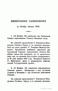 Журнал Министерства народного просвещения выходил с 1834-го по 1917 год. Официальный периодический журнал об успехах просвещения в России. Издатели журнала уверены в том, что «если для каждого человека необходим выход из грубой тьмы невежества и беспрерывное дальнейшее движение к свету, то для народов необходимо попечительное участие правительства в образовании. Только правительство имеет все средства знать и высоту успехов всемирного образования, и настоящие нужды Отечества».