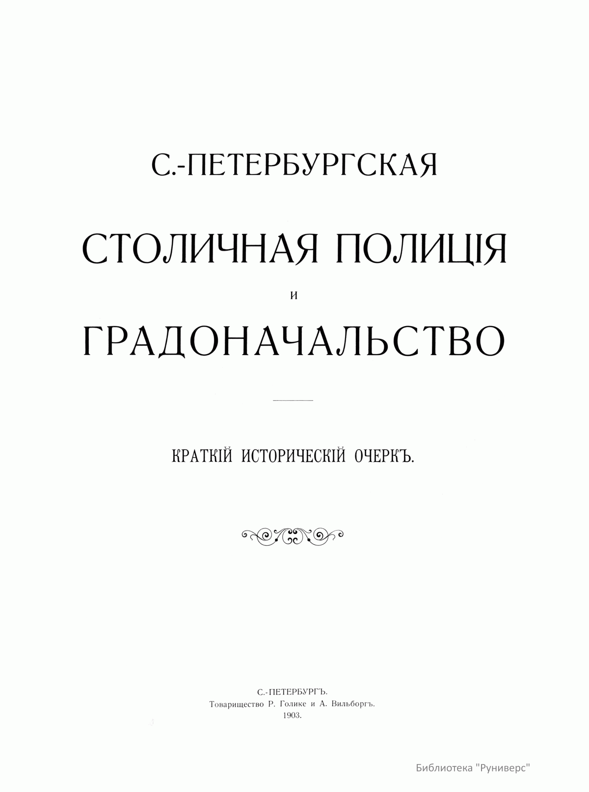 С.-Петербургская Столичная Полицiя и градоначальство. 1703-1903