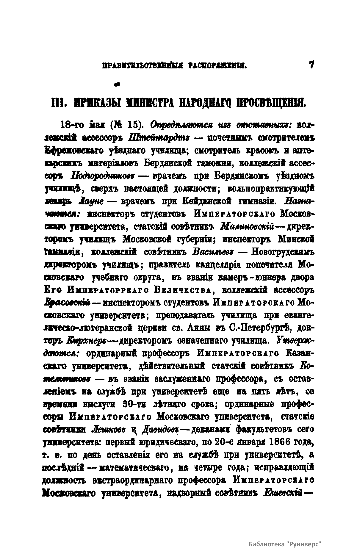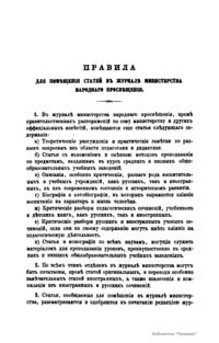 Журнал Министерства народного просвещения выходил с 1834-го по 1917 год. Официальный периодический журнал об успехах просвещения в России. Издатели журнала уверены в том, что «если для каждого человека необходим выход из грубой тьмы невежества и беспрерывное дальнейшее движение к свету, то для народов необходимо попечительное участие правительства в образовании. Только правительство имеет все средства знать и высоту успехов всемирного образования, и настоящие нужды Отечества».