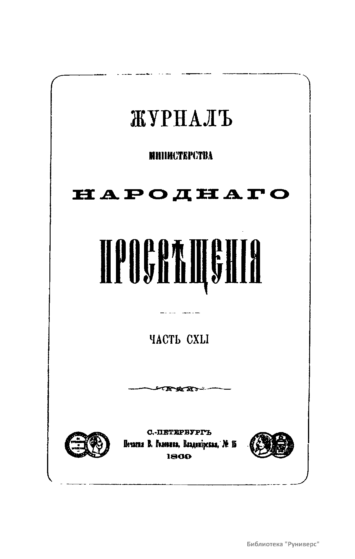 Журнал Министерства народного просвещения. Часть CXLI