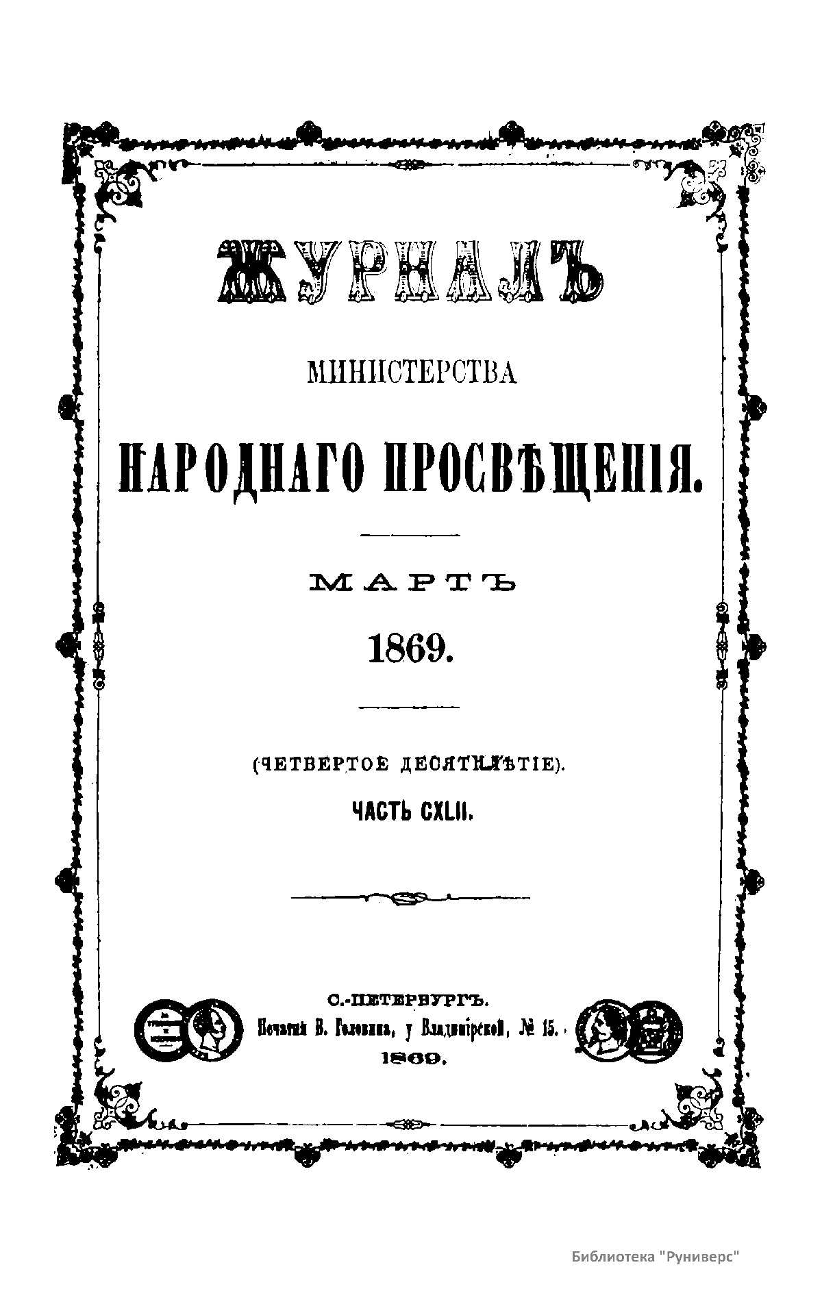 Журналъ Министерства народнаго просвѣщения. Часть CXLII