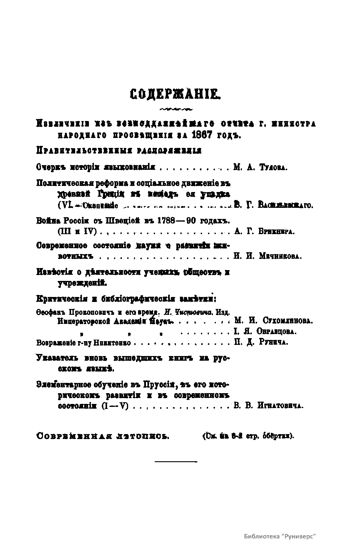 С 1864 года стали выходить указатели к повременным изданиям Министерства народного просвещения начиная с 1803 года.