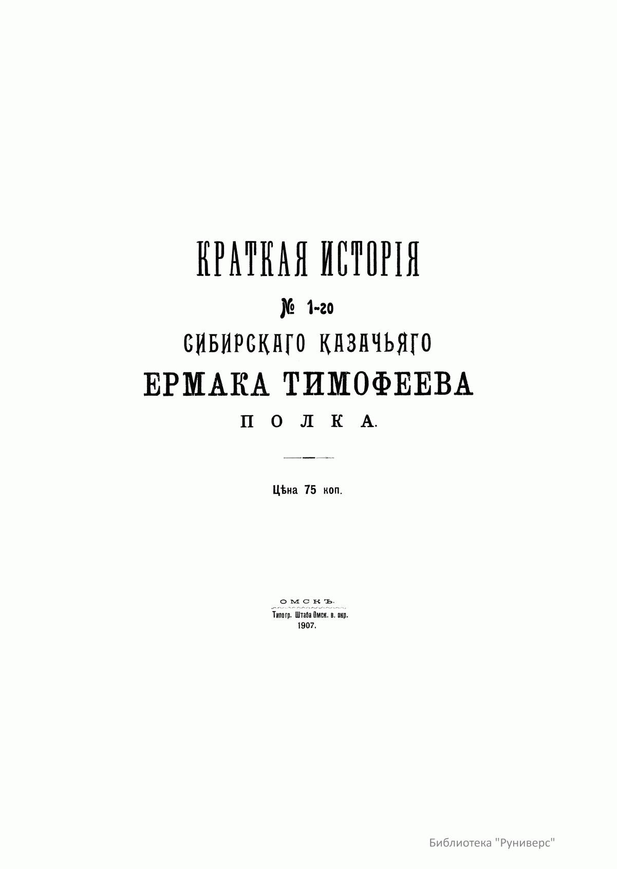 Краткая исторiя № 1-го сибирскаго казачьяго Ермака Тимофеева полка