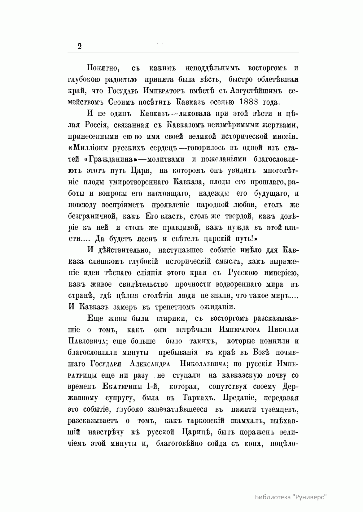 Труды выдающегося русского венного историка, генерал-лейтенанта Василия Александровича Потто (1836–1911), освещающие этапы прихода и становления русской власти в кавказском регионе, историю многолетних кавказских войн и развития казачества, обогатили русскую военную литературу и по праву считаются одними из лучших произведений кавказской тематики. Многие годы В. А. Потто собирал разрозненные документы, военные хроники и архивные материалы, чтобы отобразить общую картину драматических событий, определивших особую роль кавказских войн в истории российского государства. Издание «Царская семья на Кавказе» посвящено поездке Александра III и его семьи на Кавказ осенью 1888 г. Это путешествие имело глубокий исторический смысл, как свидетельство водворенного на Кавказе мира и воссоединения этого края с Российской империей. Рассказ об этом событии выдержан в стилистике репортажа. В хронологическом порядке описан ход поездки, населенные пункты, которые посетила императорская семья, встречи венценосных особ с местными жителями.