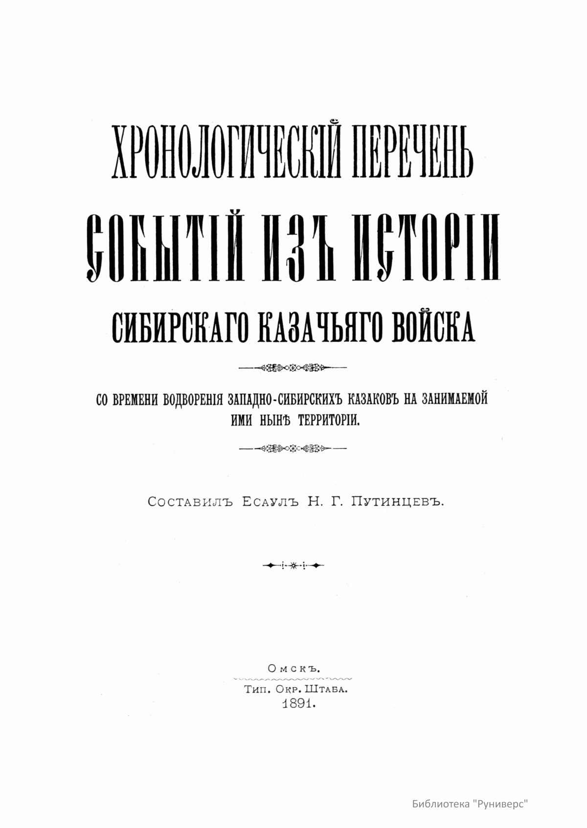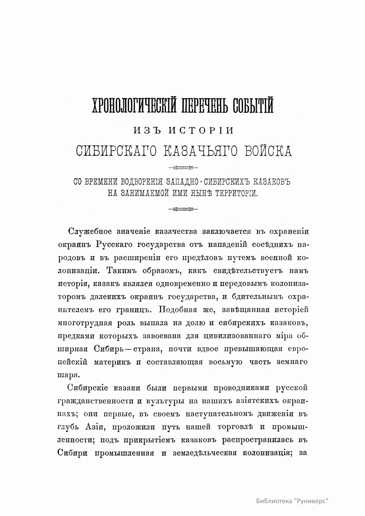 Хронологическiй перечень событiй изъ исторiи Сибирскаго казачьяго войска
