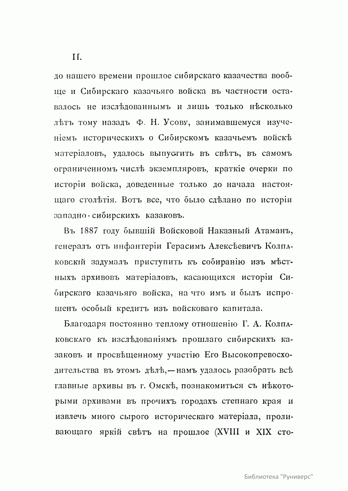 Предлагаемое издание представляет собой хронологическое описание жизни казаков Сибирского линейного войска с момента его образования. Автор этого единственного в своем роде труда — Путинцев Николай Григорьевич (1860–?) — есаул Сибирского казачьего войска, командир 5-го казачьего полка, большую часть своей деятельности посвятил исследованию и написанию истории сибирских казаков. Многие годы провел он в войсковых архивах в поисках и изучении документов о появлении казаков в Сибири и становлении казачьего войска, собирал сведения о формировании отдельных войсковых частей, материалы по истории устава и традиций сибирских военных казаков. В результате этого многолетнего труда, в год 175-летия водворения казаков на берегах Иртыша, была опубликована данная работа, где автор подчеркивает особое место Сибирского казачьего войска в истории освоения Россией новых территорий.