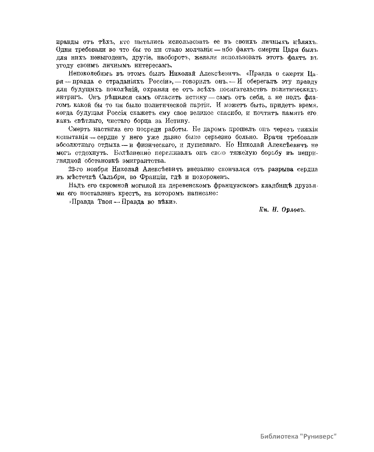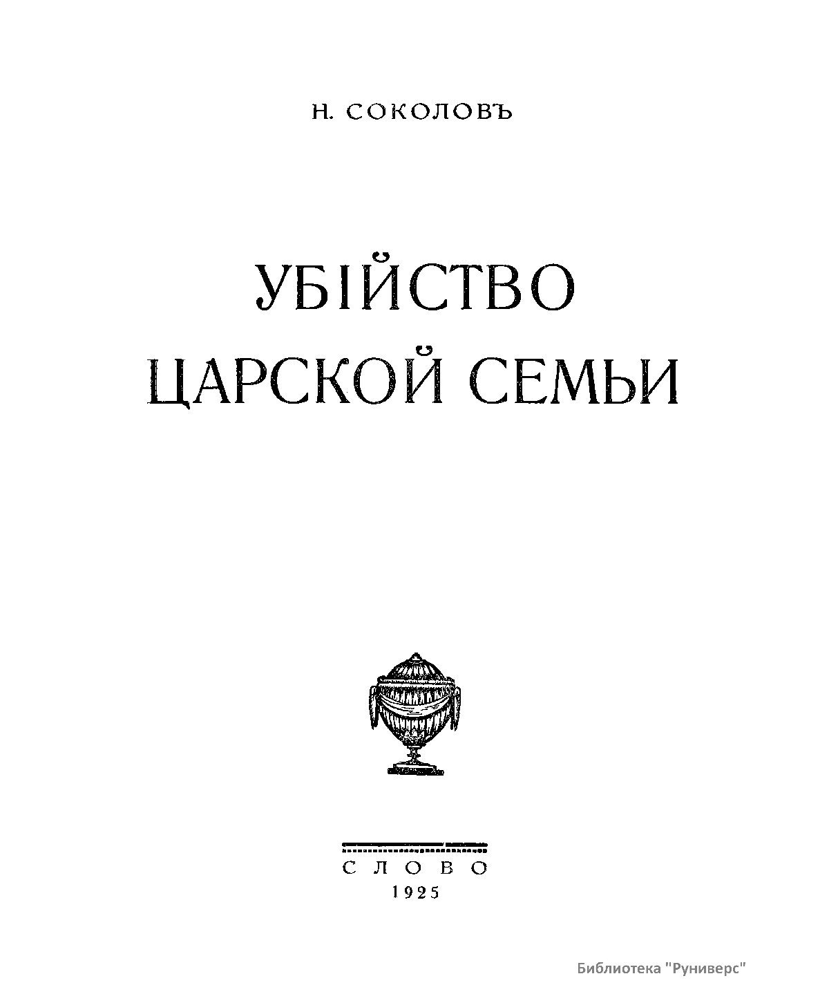 В настоящей книге, изданной в 1925 г. в Берлине, следователь по особо важным делам Омского окружного суда Николай Алексеевич Соколов опубликовал целый комплекс документов о гибели императора Николая II и его семьи. Следователь Соколов оказался первым, кто сумел с известной полнотой ответить на вопрос, который являлся десятки лет одной из самых охраняемых тайн советского государства. По его словам, он в пределах права «старался делать все возможное, чтобы найти истину и соблюсти ее для будущих поколений». Он понимал, что «личность потерпевшего и реальная действительность, в условиях которой совершилось преступление, придают ему особый характер – явления исторического». Свидетельства Соколова на долгие годы явились непререкаемым авторитетом в деле о гибели императора и его семьи. В начале 2000-х годов специалисты Генеральной прокуратуры довели до конца расследование екатеринбургской трагедии. Они собрали и проанализировали сотни документов, свидетельских показаний и, главное, нашли и идентифицировали останки императора, его семьи и приближенных. Следствие, начатое летом 1918 г., завершено почти через сто лет.