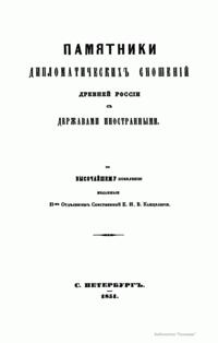 Памятники дипломатических сношений древней России с державами иностранными