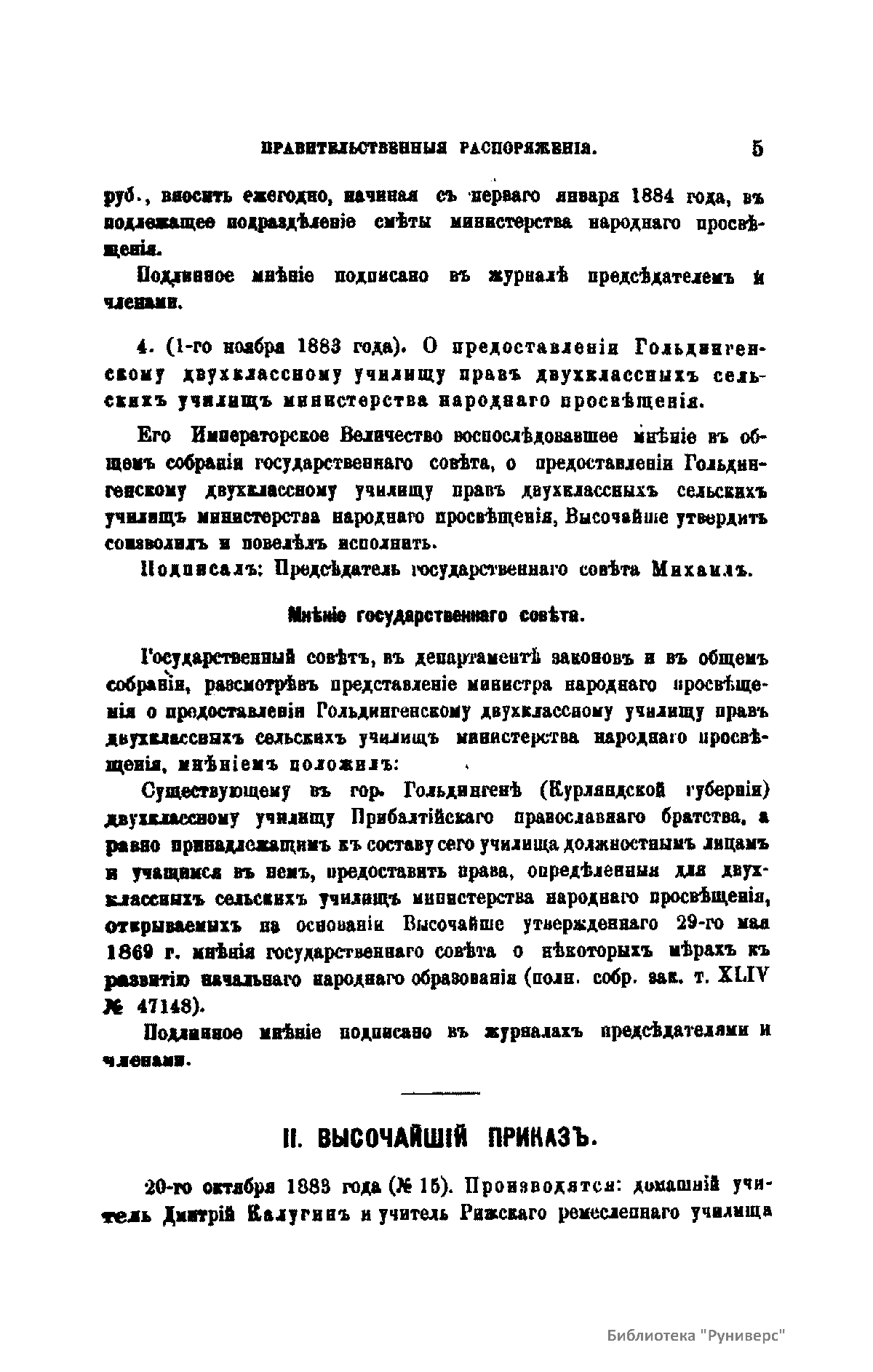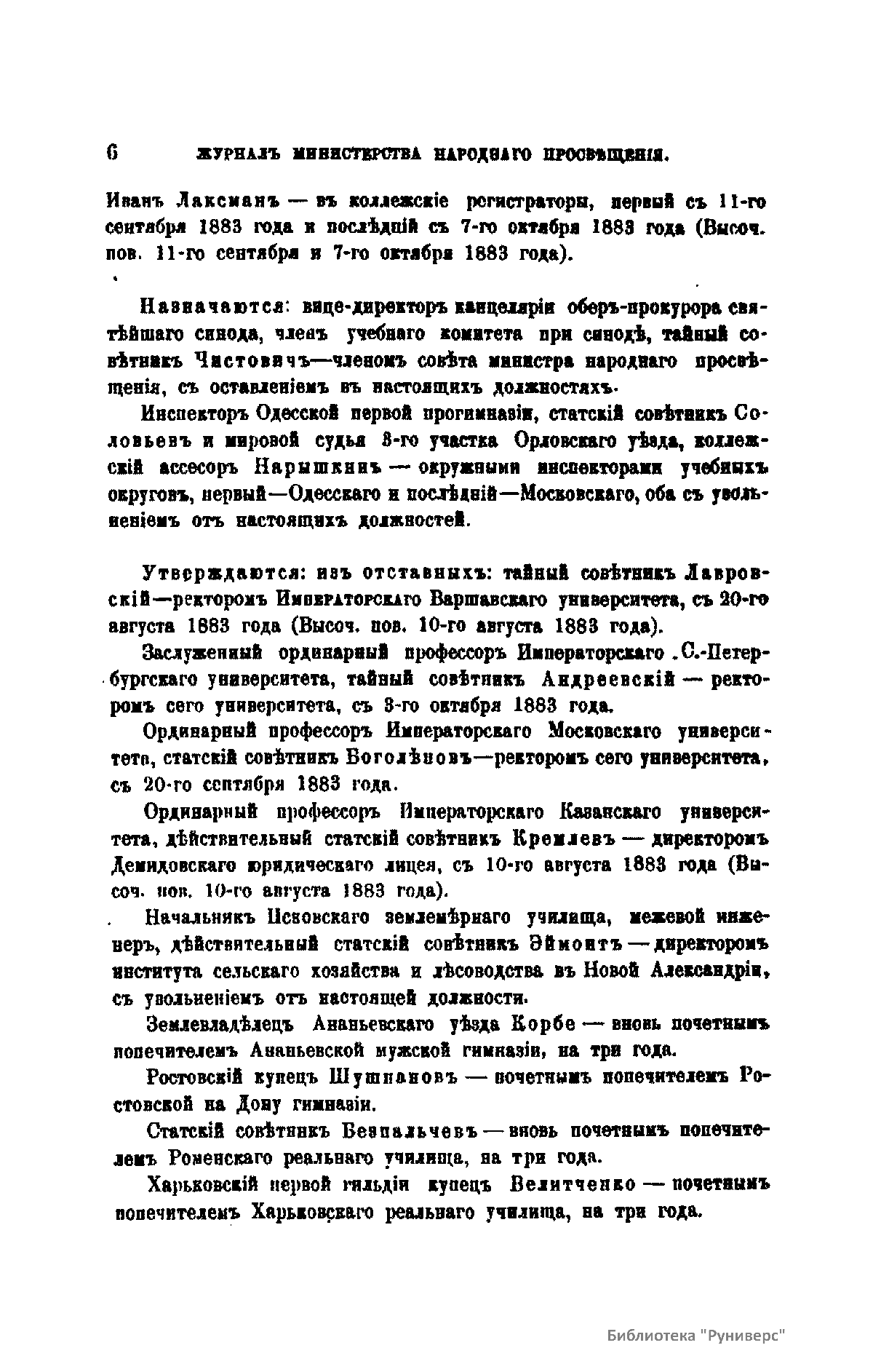 Журнал Министерства народного просвещения выходил с 1834-го по 1917 год. Официальный периодический журнал об успехах просвещения в России. Издатели журнала уверены в том, что «если для каждого человека необходим выход из грубой тьмы невежества и беспрерывное дальнейшее движение к свету, то для народов необходимо попечительное участие правительства в образовании. Только правительство имеет все средства знать и высоту успехов всемирного образования, и настоящие нужды Отечества».