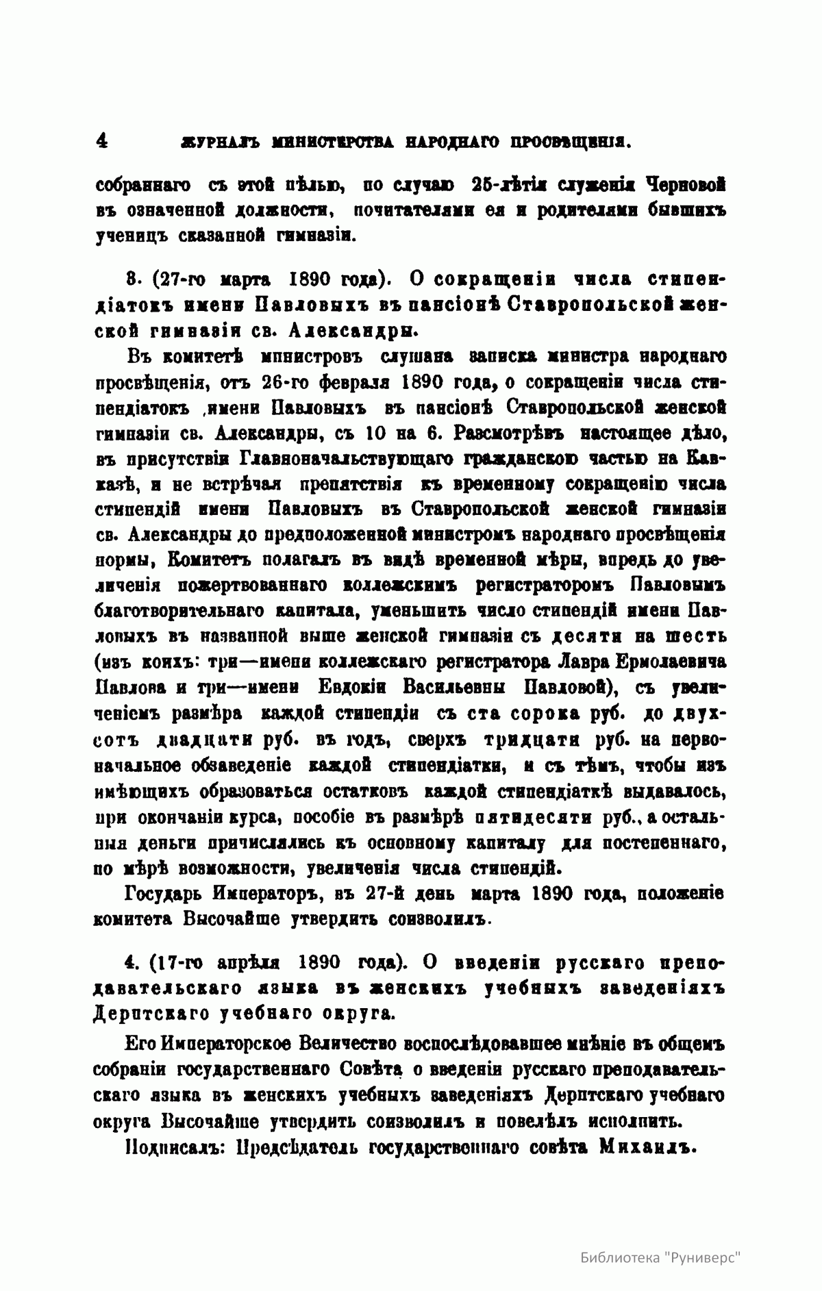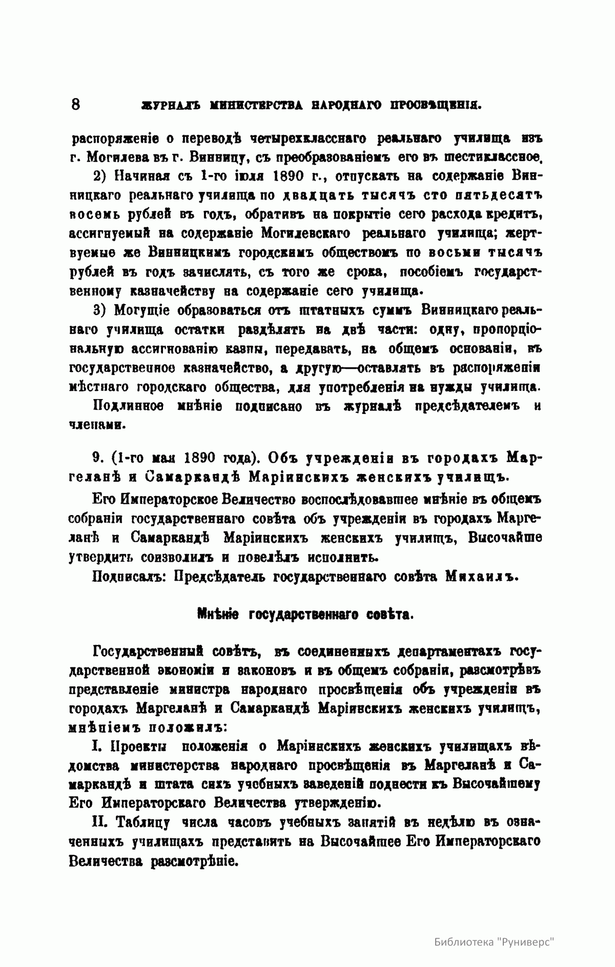 Журнал Министерства народного просвещения выходил с 1834-го по 1917 год. Официальный периодический журнал об успехах просвещения в России. Издатели журнала уверены в том, что «если для каждого человека необходим выход из грубой тьмы невежества и беспрерывное дальнейшее движение к свету, то для народов необходимо попечительное участие правительства в образовании. Только правительство имеет все средства знать и высоту успехов всемирного образования, и настоящие нужды Отечества».