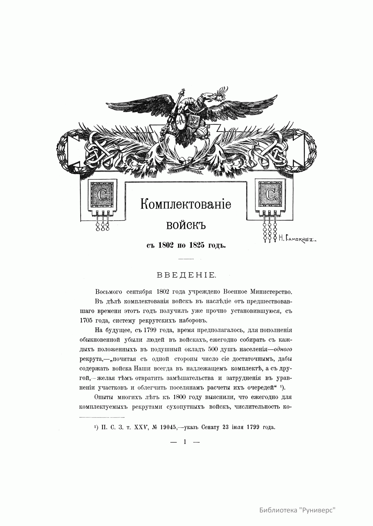 Столѣтiе военнаго министерства. 1802-1902. Главный штаб. Историческiй очерк. Комплектованiе войскъ въ царствованiе Императора Александра I
