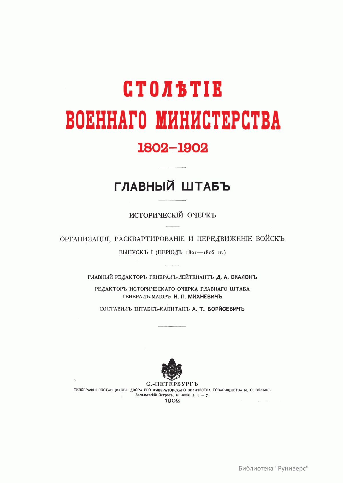 Столетие военного министерства. 1802-1902. Главный штаб. Исторический очерк. Организация, расквартирование и передвижение войск