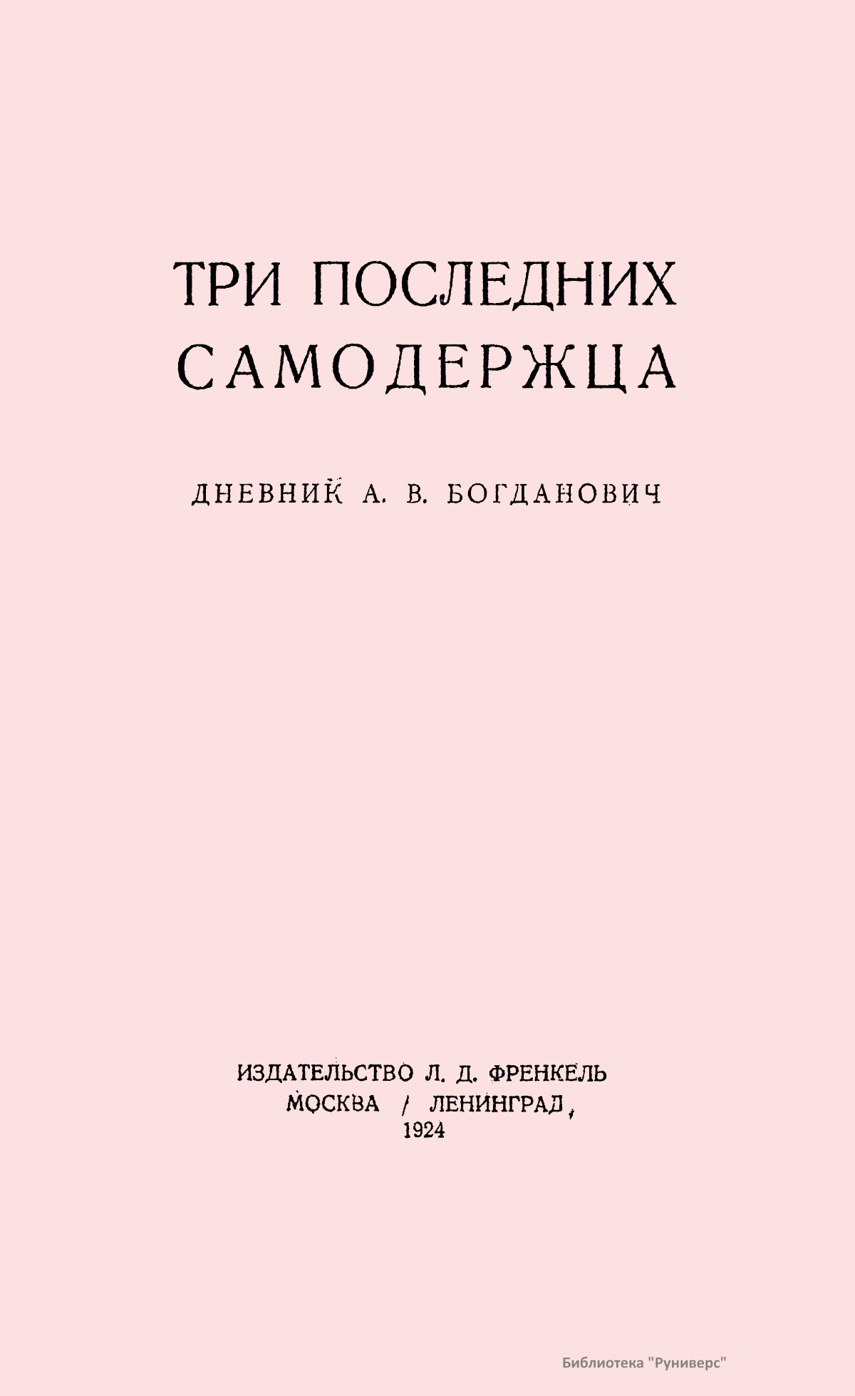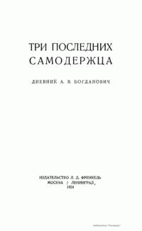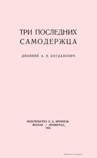 Три последних самодержца. Дневник А.В. Богданович