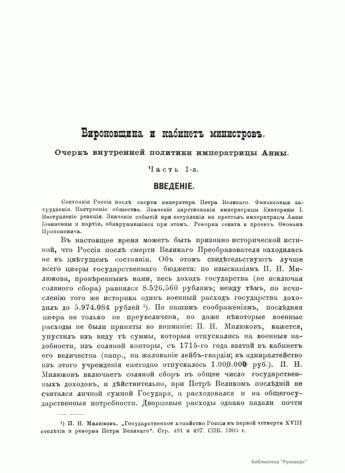 Бироновщина и Кабинет министров. Очерк внутренней политики Императрицы Анны
