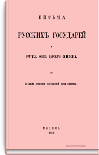 Настоящие письма изданы комиссией печатания государственных грамот и договоров, состоящей при Московском главном архиве министерства иностранных дел. Кроме материалов Главного архива комиссия пользовалась собраниями Государственного архива С.-Петербурга, Императорской публичной библиотеки и Румянцевского музея. Письма русских государей и других особ царского семейства представляют собой любопытный исторический памятник.