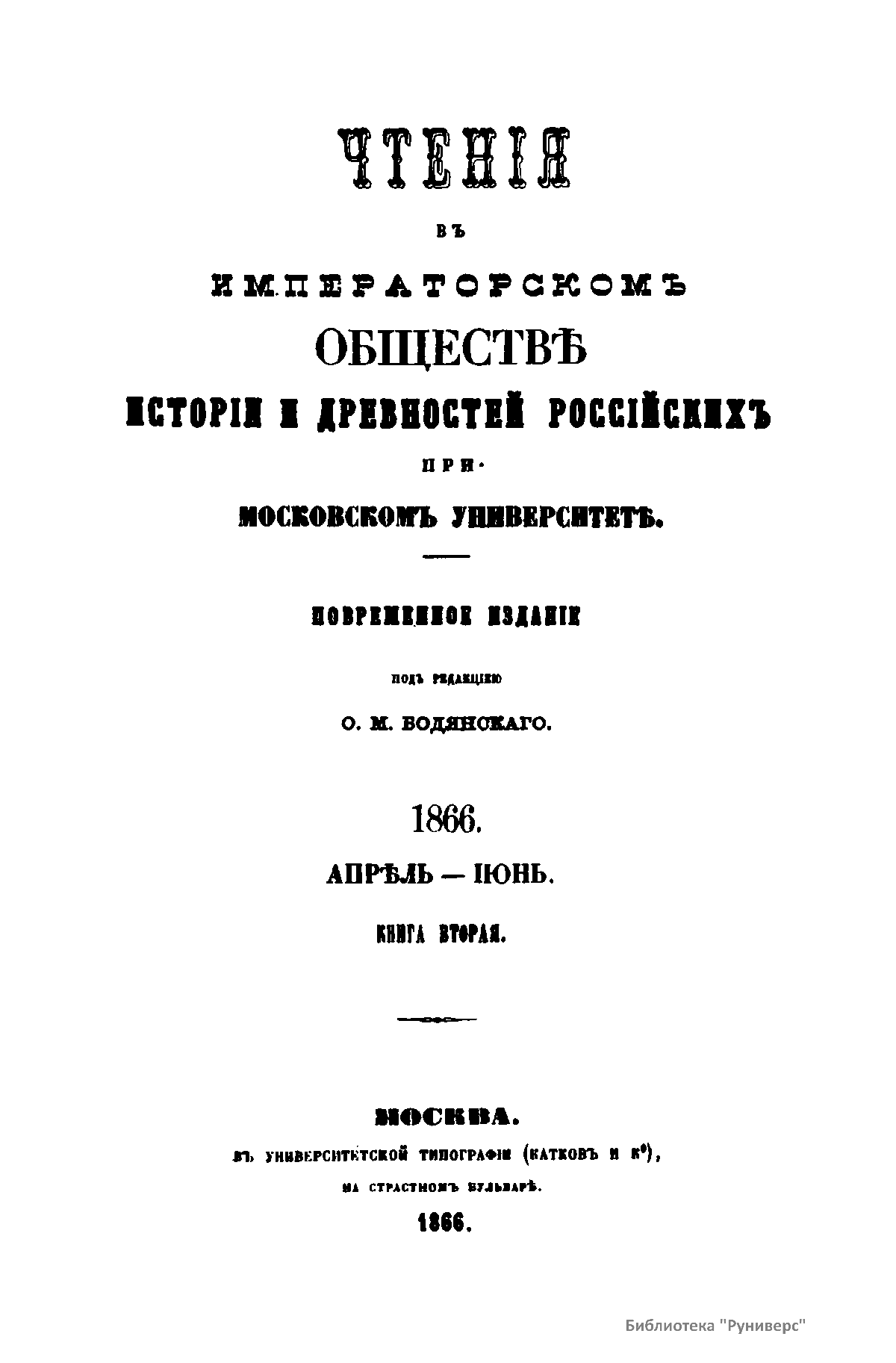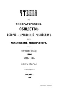 Чтенiя въ Императорскомъ Обществѣ Исторiи и Древностей Россiйскихъ при Московскомъ Университетѣ. 1866. Апрѣль-Iюнь. Книга вторая
