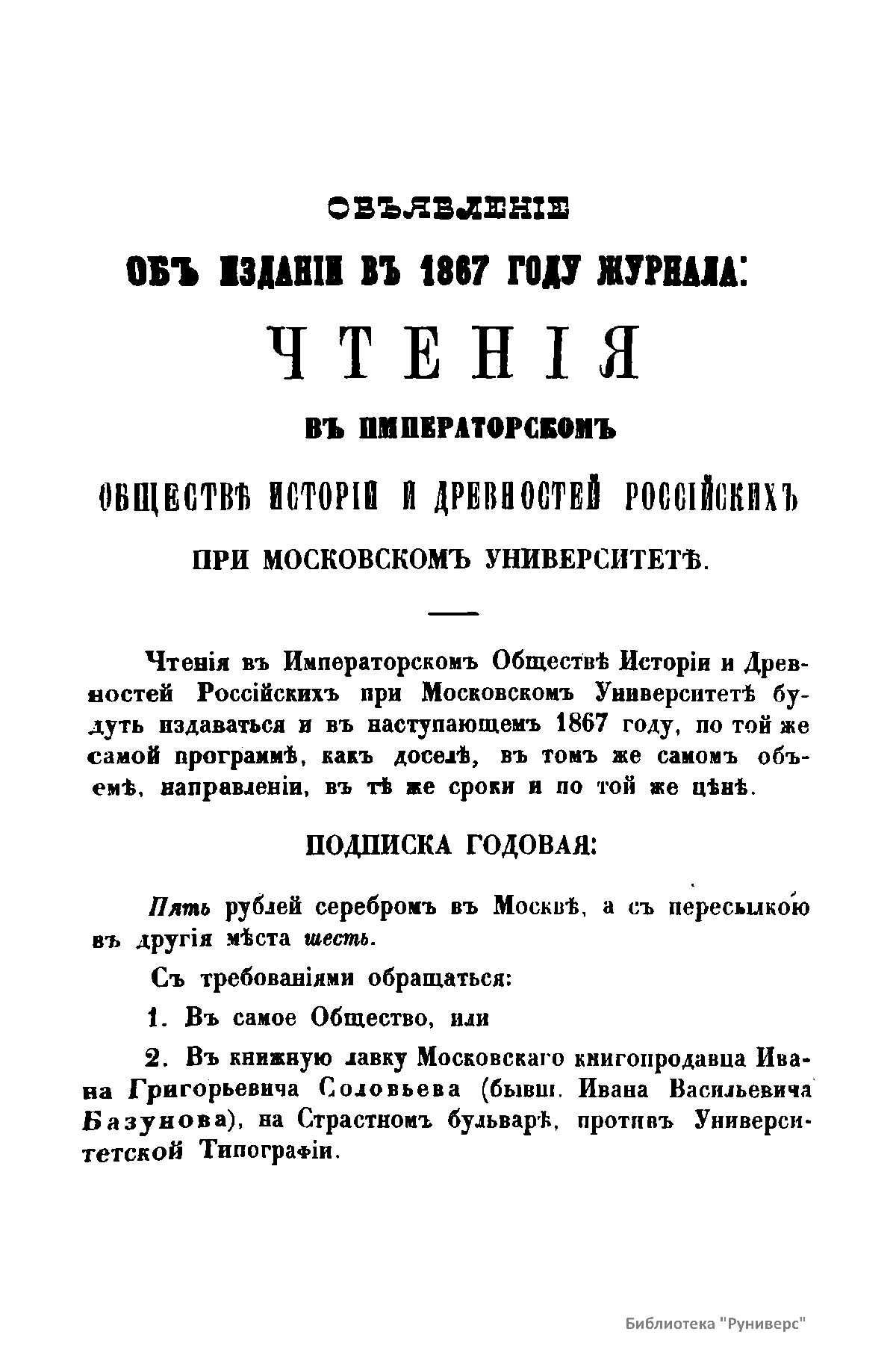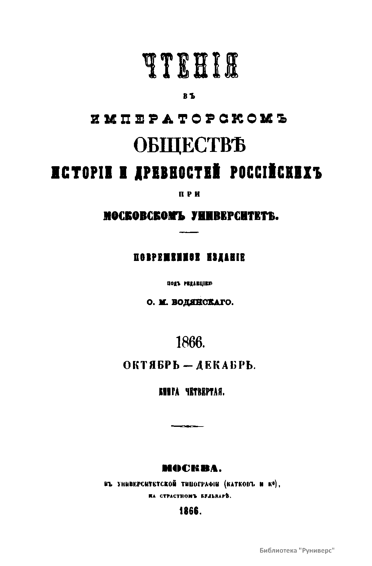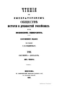 Чтенiя въ Императорскомъ Обществѣ Исторiи и Древностей Россiйскихъ при Московскомъ Университетѣ. 1866. Октябрь-Декабрь. Книга четвертая