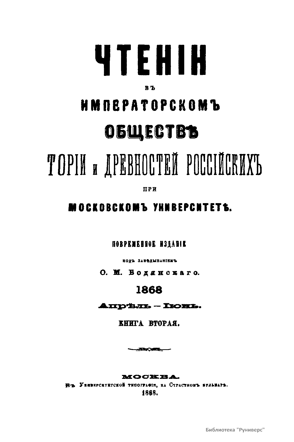Чтения в Императорском Обществе Истории и Древностей Российских при Московском Университете. 1868. Апрель-Июнь. Книга вторая