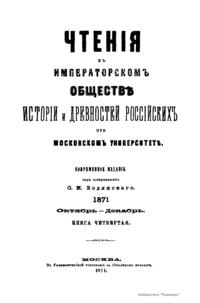Чтенiя въ Императорскомъ Обществѣ Исторiи и Древностей Россiйскихъ при Московскомъ Университетѣ. 1871. Октябрь-Декабрь. Книга четвертая