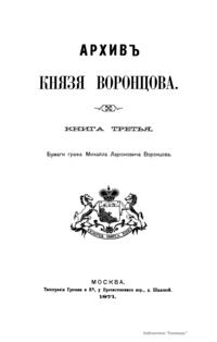 Архив Князя Воронцова. Книга третья