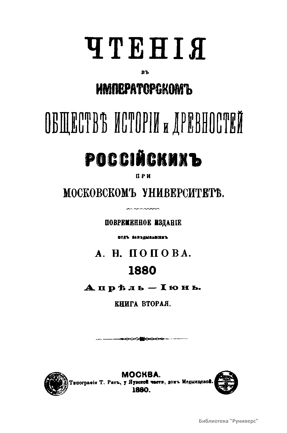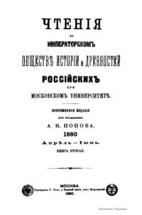 Чтенiя въ Императорскомъ Обществѣ Исторiи и Древностей Россiйскихъ при Московскомъ Университетѣ. 1880. Апрѣль-Iюнь. Книга вторая
