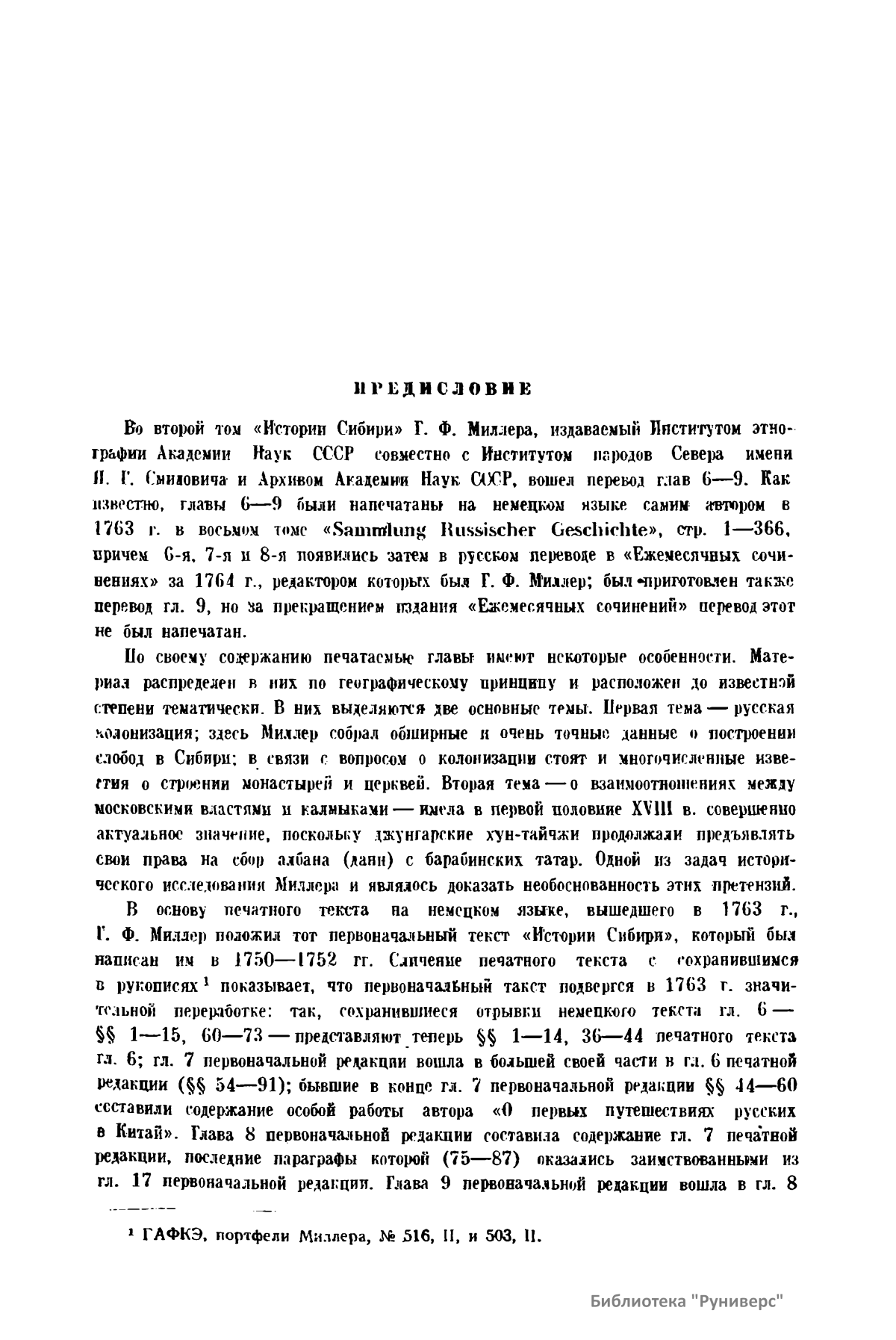 Настоящее издание – первый в истории научный труд по истории Сибири. Составлен в XVIII веке историографом академиком Г. Ф. Миллером (1705 – 1783), который был участником Великой северной экспедиции 1733 – 1743 гг. и написал пятитомную «Историю Сибири», состоящую из 23 глав. Этот труд до сих пор полностью не опубликован. Том I включает автобиографию Миллера, предисловие и текст глав 1 – 5. В «Приложении» публикуются: 1. Исторические акты, относящиеся к главам 1 – 5. 2. Статьи о сибирских древностях: а) о памятниках древности татарской, найденных в могильных холмах близ Абаканского и Саянского острогов; б) о древних памятниках в уездах Селенгинском и Нерчинском; в) изъяснение о некоторых древностях, в могилах найденных; г) о сибирских писаных камнях. Том II включает текст глав 6 – 9. В «Приложении» публикуются: а) исторические акты, относящиеся к главам 6 – 9.