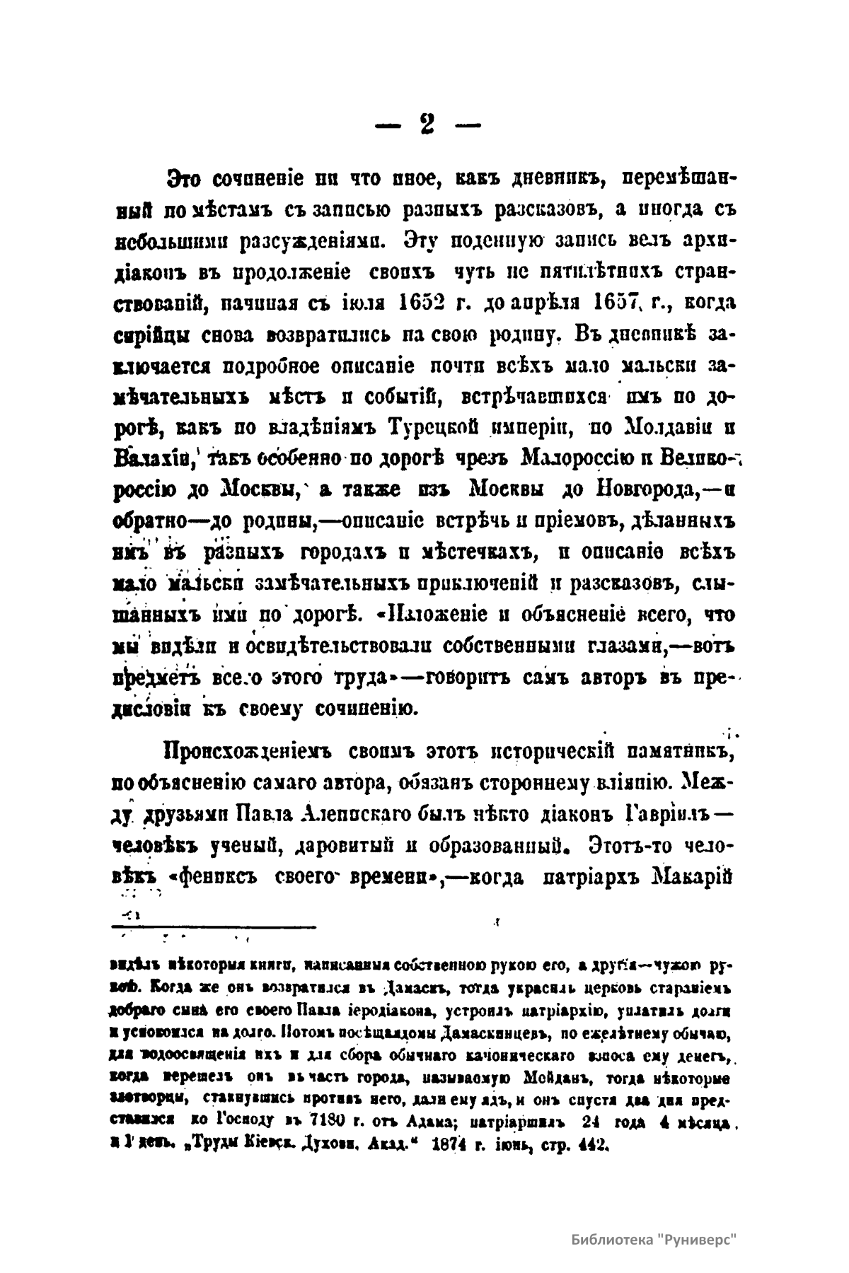 Настоящее издание – часть дневника архидьякона Павла Алеппского (Халеб, Алеппо – город в Сирии), посвященная России. Этот дневник он вел во время путешествия за сбором милостыни со своим отцом Антиохийским патриархом Макарием по Турции, Молдавии, Валахии, Малороссии и России с 1652-го по 1657 г. Описание путешествия по России (1654 – 1656) занимает две трети труда архидьякона. «Изложение и объяснение всего, что мы видели и освидетельствовали собственными глазами – вот предмет всего этого труда», – говорит сам автор в предисловии к своему сочинению. Подробный анализ публикации находится в конце книги (стр. 189).