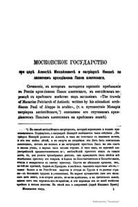 Московское государство при царѣ Алексѣѣ Михайловичѣ и Патрiарх Никонѣ, по запискамъ архидiякона Павла Алеппскаго