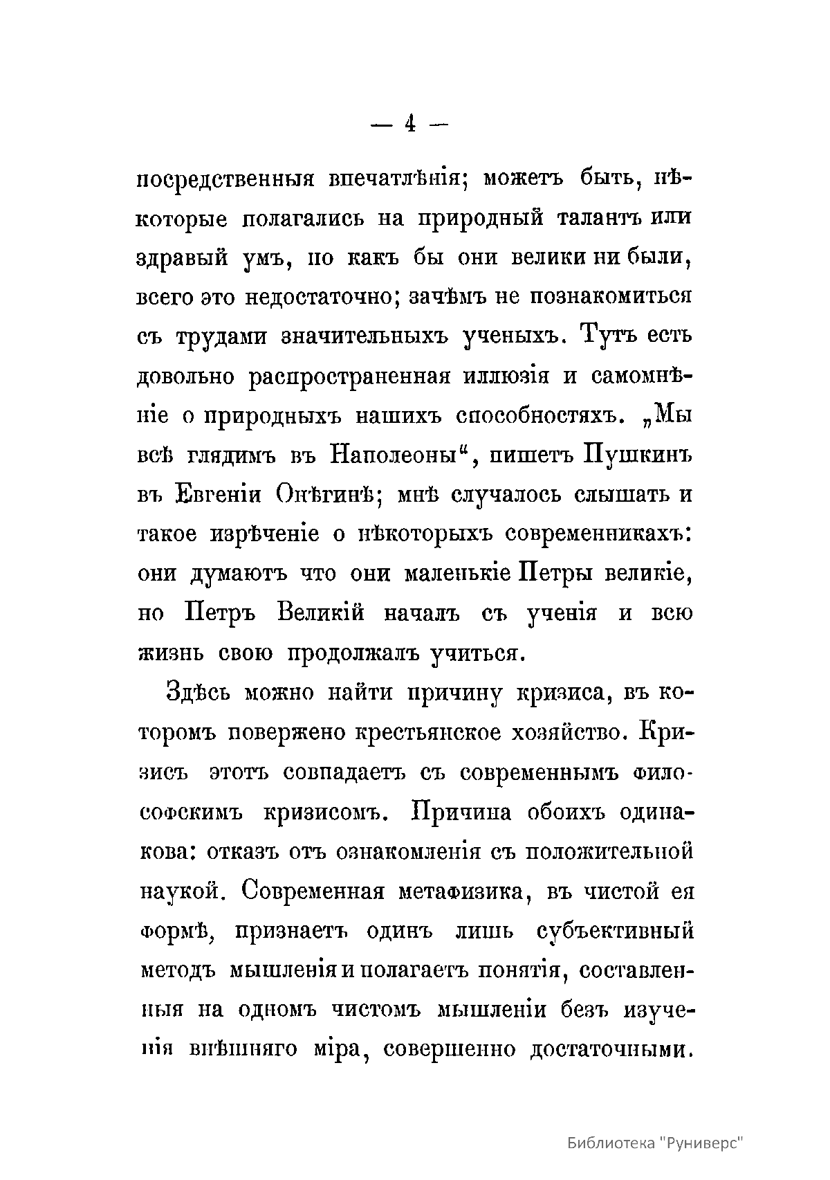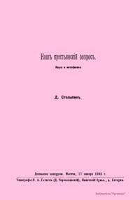 По определению автора, «главная идея Огюста Конта заключается в представлении науки как составляющей одно целое; представление, зиждящееся на положении: об естественном совпадении неорганического мира с основными законами органических и общественных явлений». Он пытаелся найти практическое применение идеям Конта, занявшись устройством жизни и быта крестьян в столыпинских имениях. Д. А. Столыпин пришел к выводу, что крестьянская община с ее круговой порукой задерживает переход крестьян к более рациональному и интенсивному хозяйству, и выдвинул идею арендного хуторного хозяйства. Д. А. Столыпин возглавлял комиссию Императорского московского общества сельского хозяйства по исследованию вопроса об устройстве крестьянских хуторов на владельческих землях (1874-1889). Эта комиссия несколько раз публиковала обширные доклады. Предлагаемая работа - один из опытов философской рефлексии на аграрную тему.