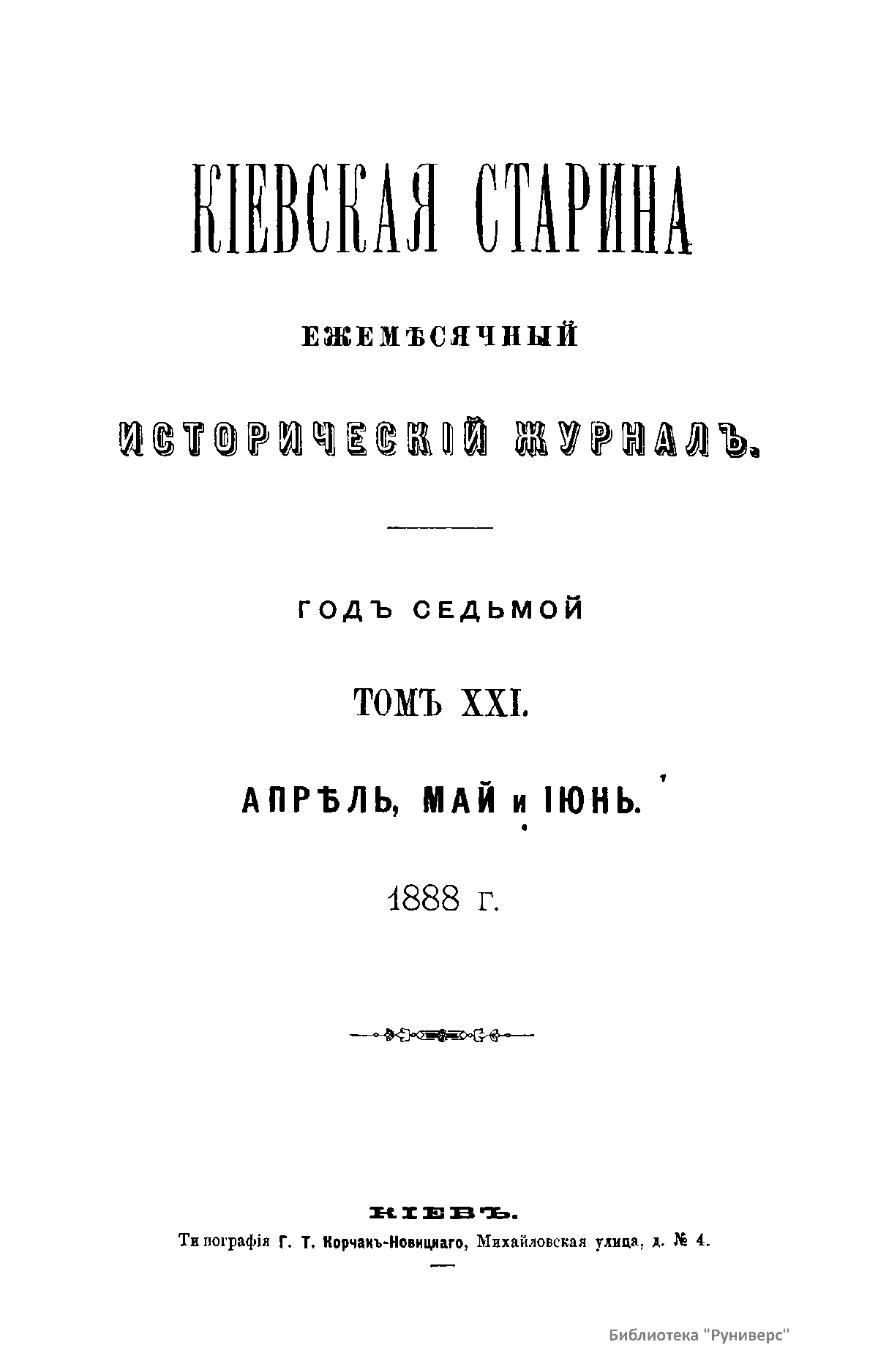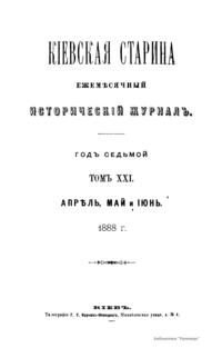 Киевская старина. Год седьмой. Том XXI. Апрель-Июнь 1888 г.