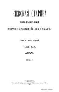 Киевская старина. Год восьмой. Том XXV. Апрель-Июнь 1889 г.