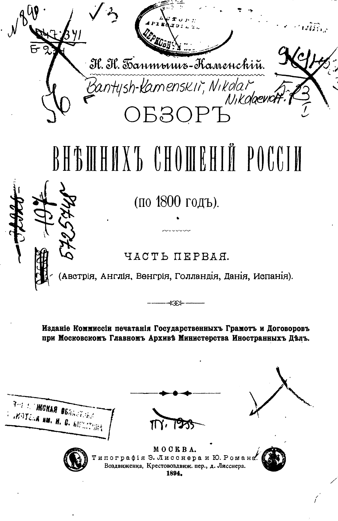 Обзоръ внѣшнихъ сношенiй Россiи (по 1800 годъ)