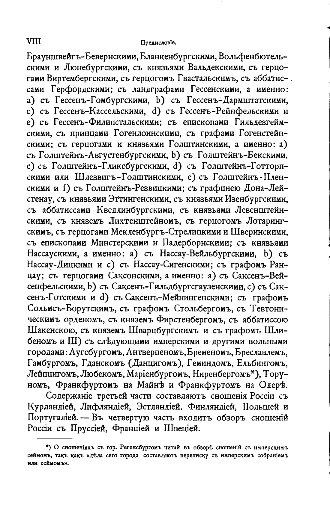 Посмертное издание ключевого труда бессменного (в течение почти 50 лет) археографа и управляющего Московским Главным архивом коллегии иностранных дел - систематизированное изложение документов о посольствах между российскими монархами и европейскими державами, дипломатической переписки и договоров.