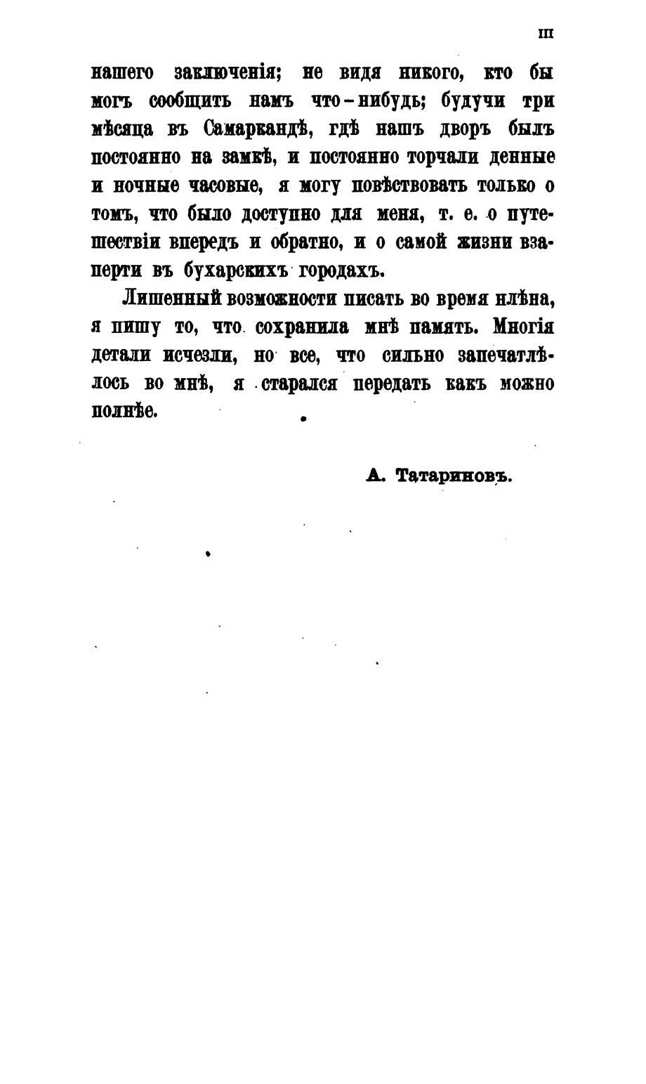 «Спросили: что за нас отдаст Россия? Не уступит ли Бухарии всех мусульманских земель? Мы засмеялись, — наши гости сконфузились. «Не отдадут ли за ваше освобождение Ташкента?» — « Что раз завоевано русским оружием, то не отдается» — «Что же за вас отдадут?» — «Ничего».
