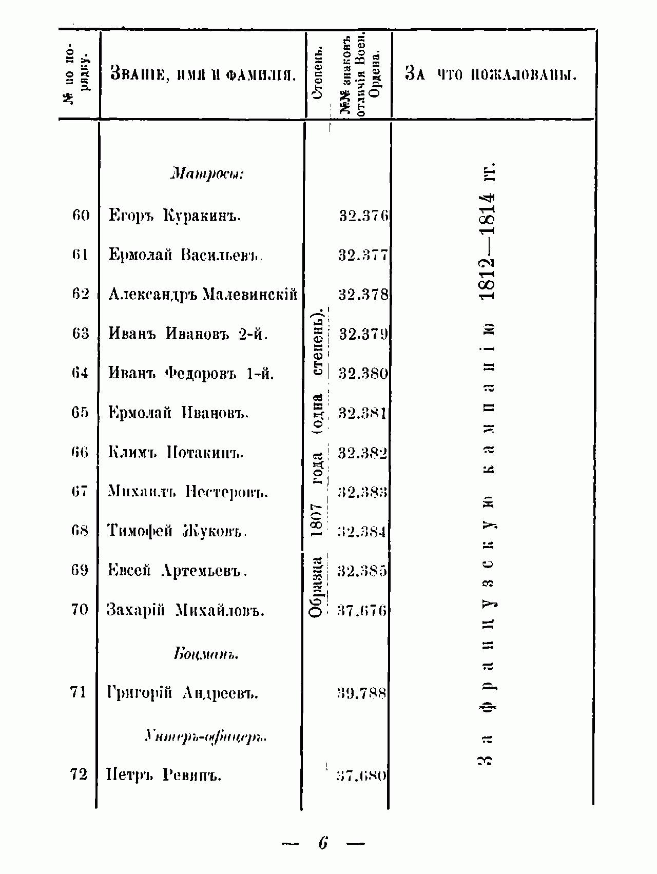 Список нижних чинов - Георгиевских кавалеров Гвардейского экипажа со времени его формирования в 1810 году