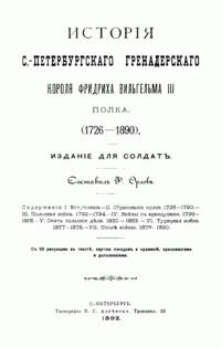 Исторiя С.-Петербургскаго гренадерскаго Короля Фридриха Вильгельма III полка. (1726-1890)