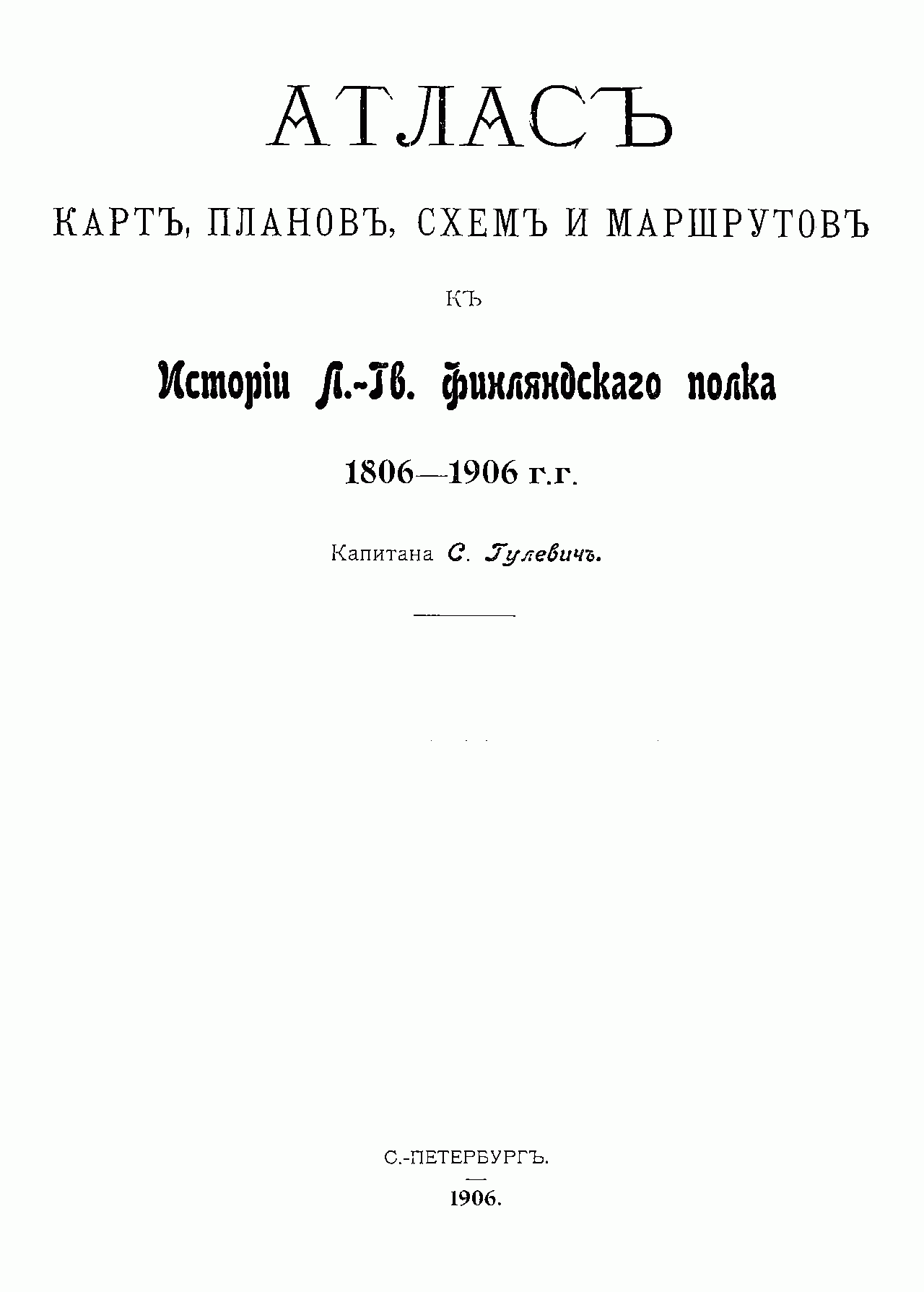 Атласъ картъ, плановъ, схемъ и маршрутовъ къ Исторiи Лейбъ-гвардiи Финляндскаго полка 1806-1906 г.г.