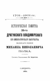 Историческая памятка 38-го Драгунскаго Владимiрскаго Его Императорскаго Высочества Великаго Князя Михаила Николаевича полка