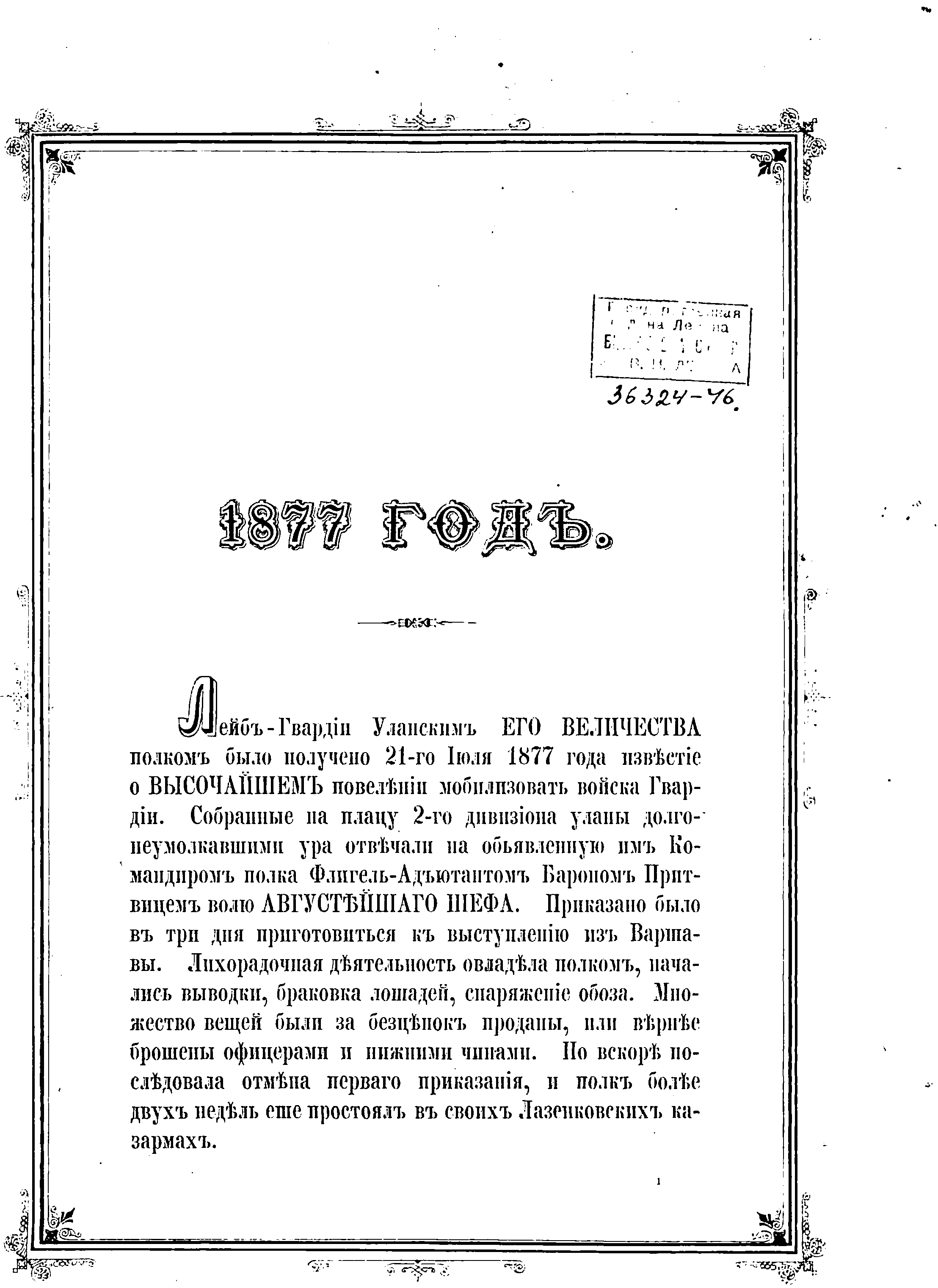 Лейбъ-гвардiи Уланскiй Его Величества полкъ в кампанию 1877-8 гг.