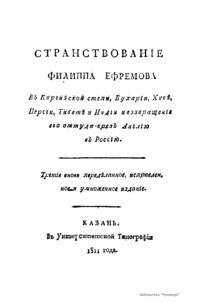 Странствование Филиппа Ефремова в Киргизской степи, Бухарии, Хисе, Персии, Тибете и Индии и возвращение его оттуда чрез Англию в Россию
