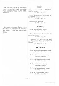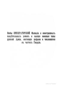 Краткие истории частей Императорской гвардии, наименования и переименования, командиры, шефы, боевой путь, награды гвардейских частей. Широко известные цветные таблицы униформы, составленные В. К. Шенком.