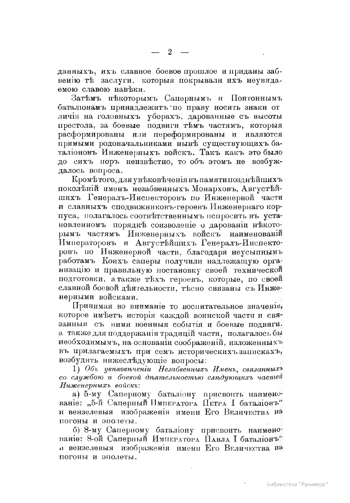 Исторические справки, как необходимые материалы для решения вопросов по присвоению некоторым частям инженерных войск