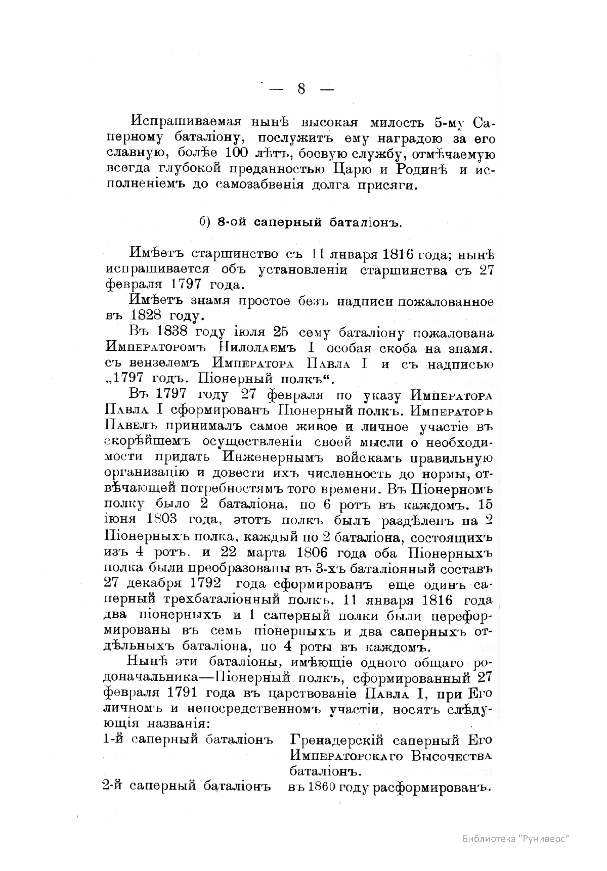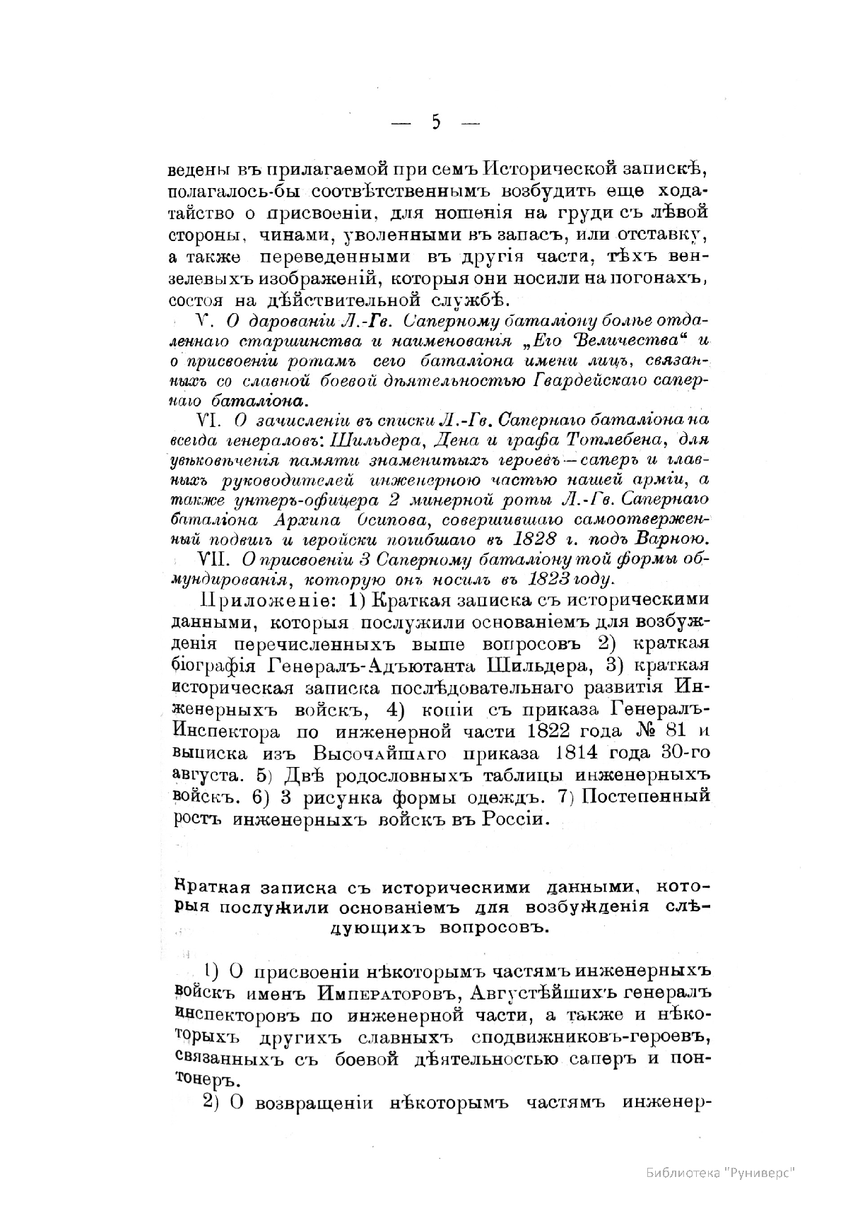 Историческiя справки, какъ необходимые матерiалы для рѣшенiя вопросовъ по присвоенiю нѣкоторымъ частямъ инженерныхъ войскъ
